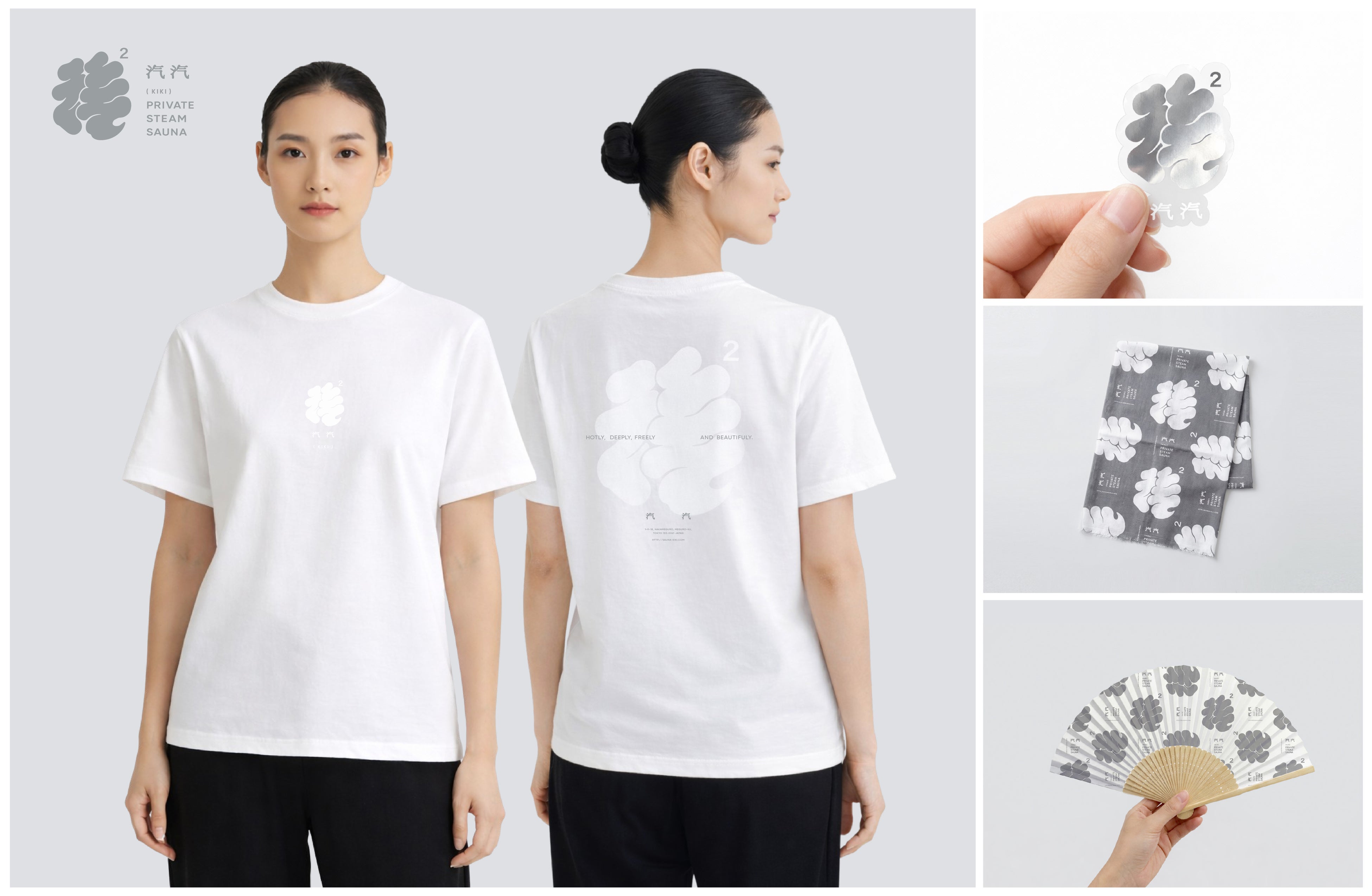 『SAUNA汽汽』では施設の世界観を日常でも楽しんでいただけるよう、店内でオリジナルの公式グッズも販売します。ステッカーやTシャツ、扇子、手拭いなど、施設の空間やグラフィックデザインと連動したデザインとし、“喜々な日々”を日常に持ち帰るための“ライフスタイルプロダクト”として展開します。