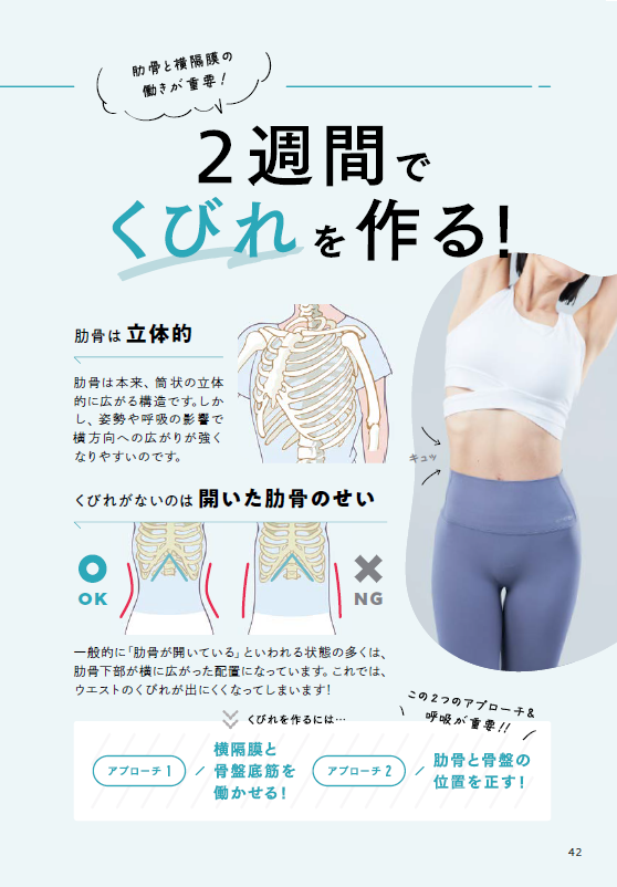 大人の女性が一番気になる、お腹周りの浮き輪肉。くびれの存在なんて、とうの昔に忘れたよ、という方もご安心ください。著者のメソッドのいいとこ取りをした、2週間メソッドが完成。きつい筋トレはなく、呼吸の改善と骨格を整えることに意識を向けたエクササイズで、短期間でくびれを実感することができます。