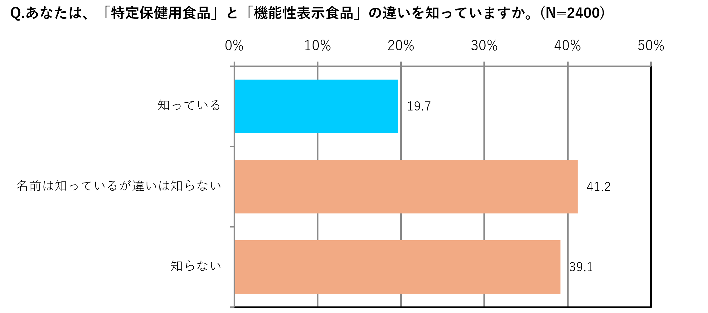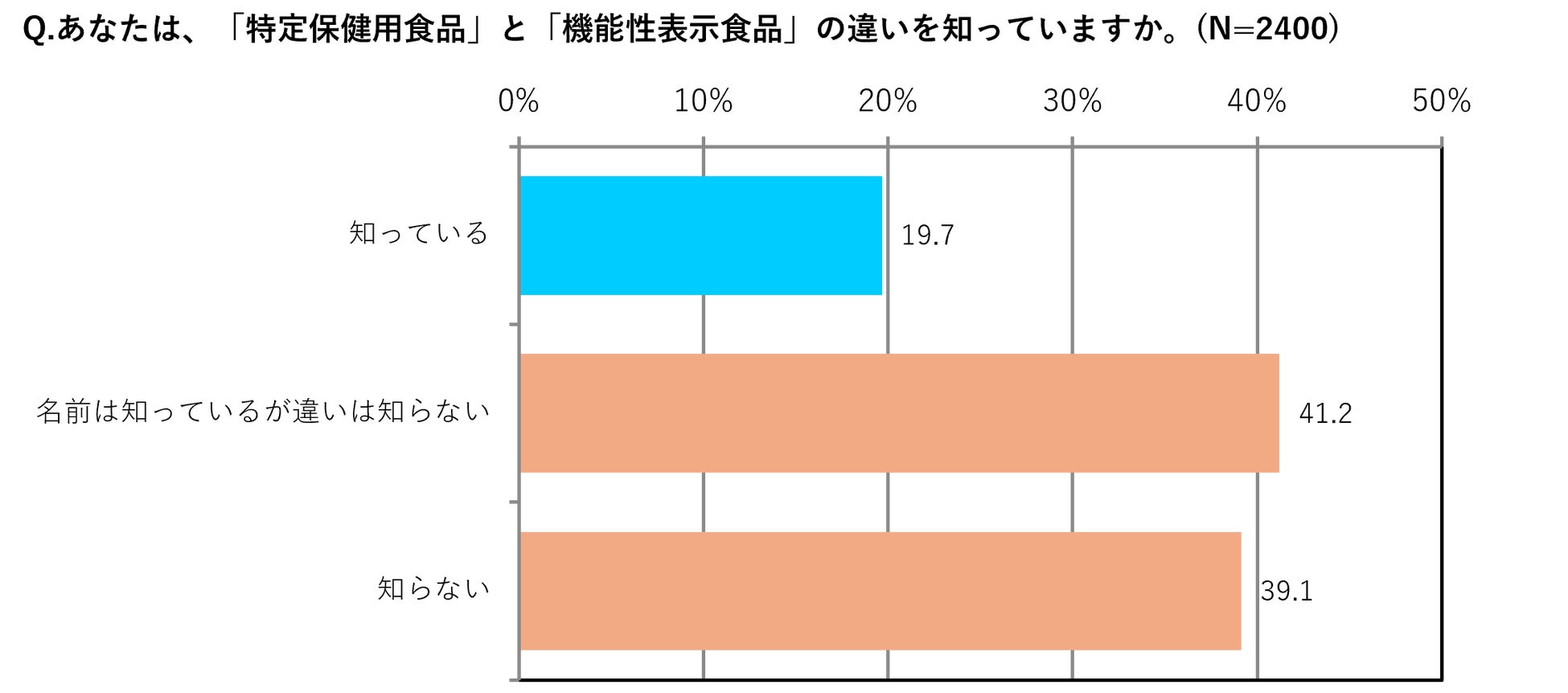 ・「特定保健用食品(トクホ)と機能性表示食品の違いを知っている人」は19.7%と2割にも満たないが、