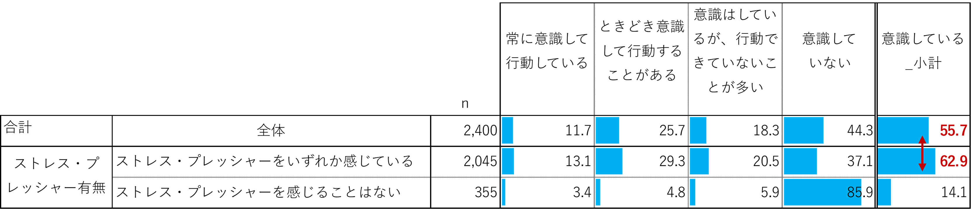 ■ストレス・プレッシャーを感じる人ほど、腸内環境ケアへの意識が高い
