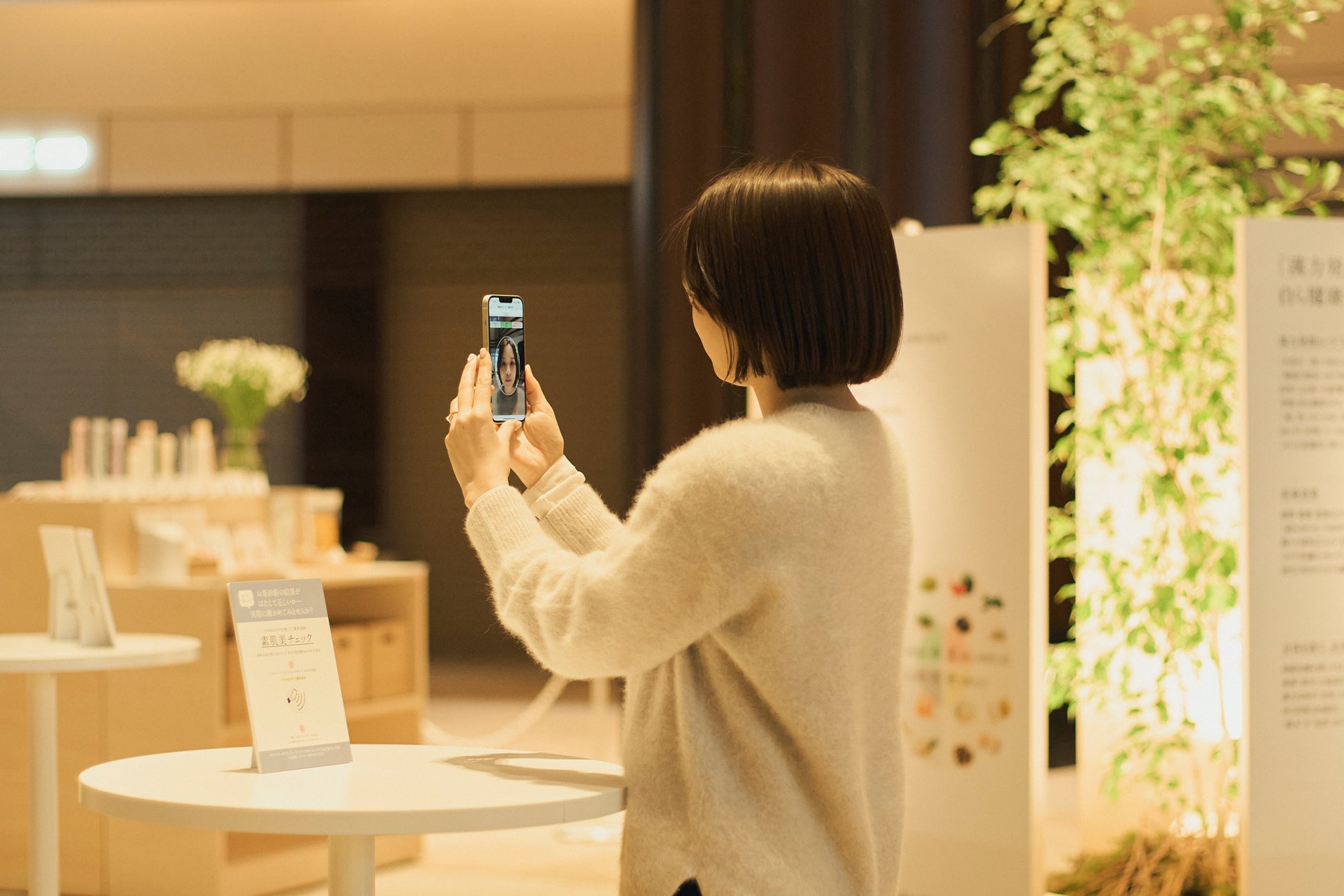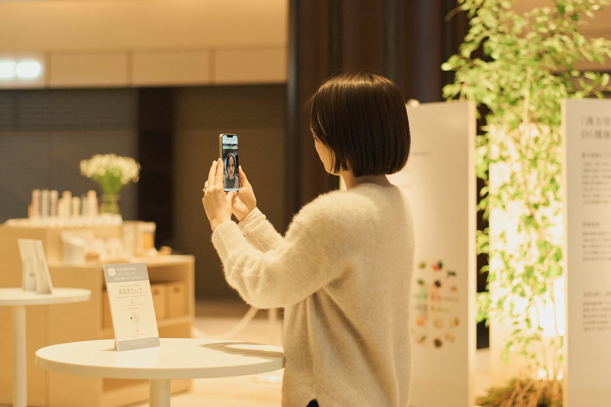 直感で選んだ②の結果を受けて、実際の状態がどうかをロジカルにチェックする、最新のAI肌分析「素肌美チェック」を楽しめます。本年1月にリニューアルしたばかりの「ドモホルンリンクル」製品を、②③の結果に合わせて気軽にお試しできるほか、ご希望に応じて一人ひとりの肌に今すぐ取り入れられるスキンケア方法のカウンセリングも実施します。