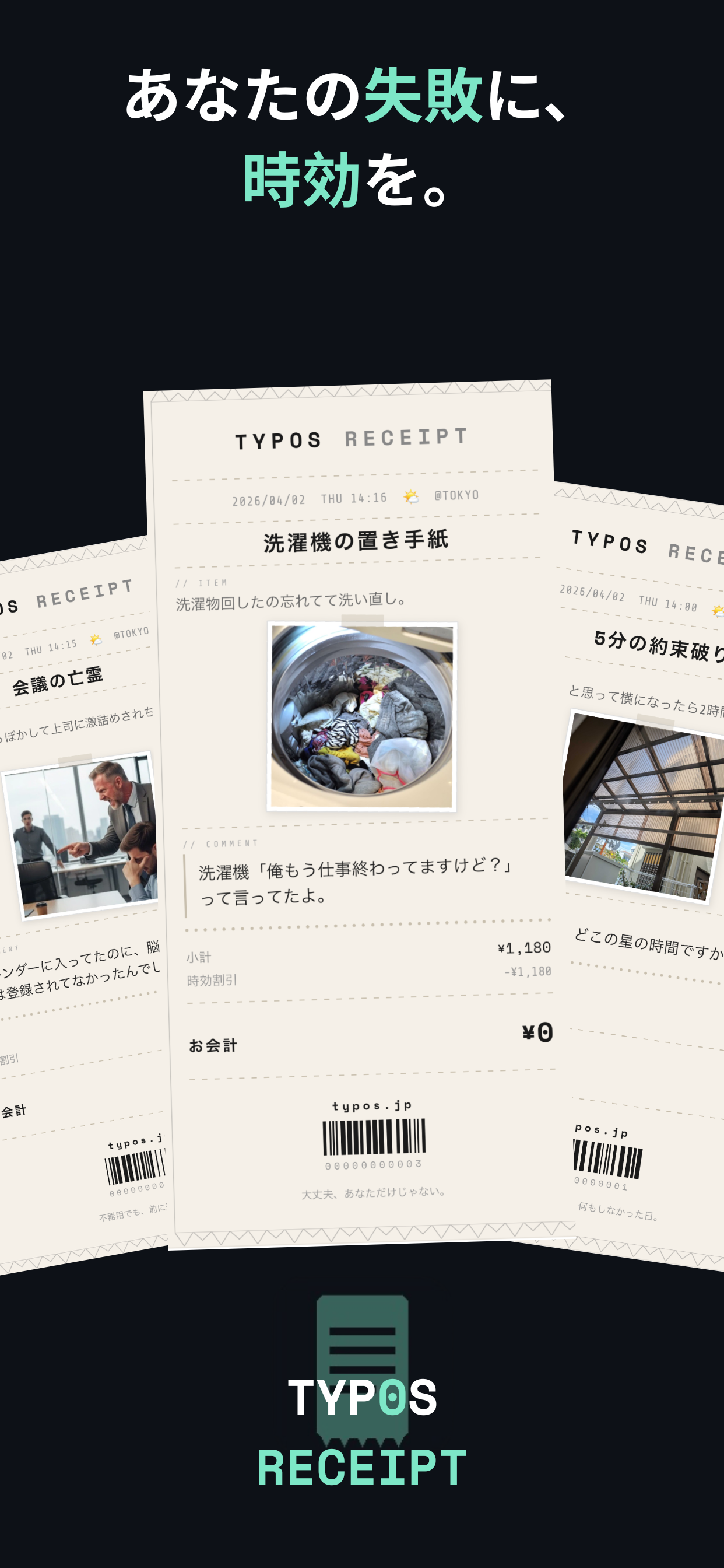 TYP0S RECEIPTは、その失敗を隠すのではなく、レシートとして発行するアプリです。