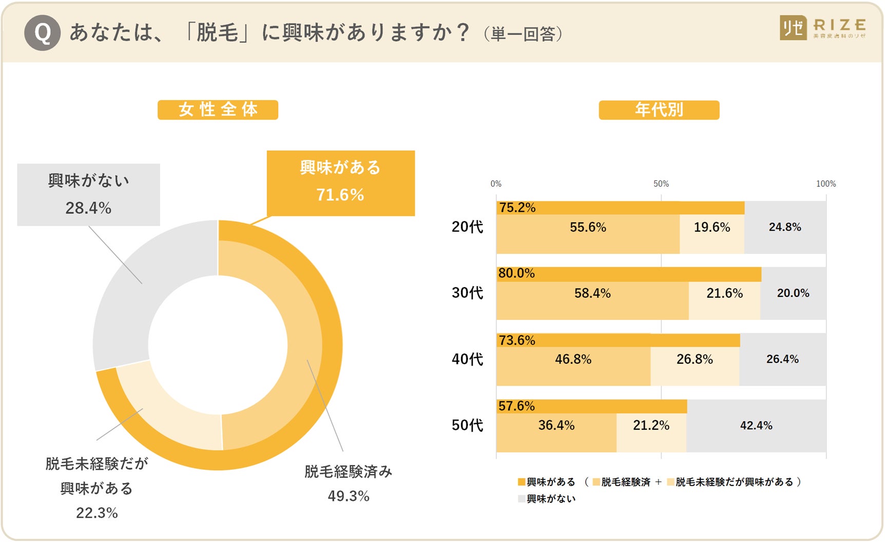 ■【年代別「脱毛」に関するアンケート調査】まとめ (美容皮膚科『リゼクリニック』調べ) |