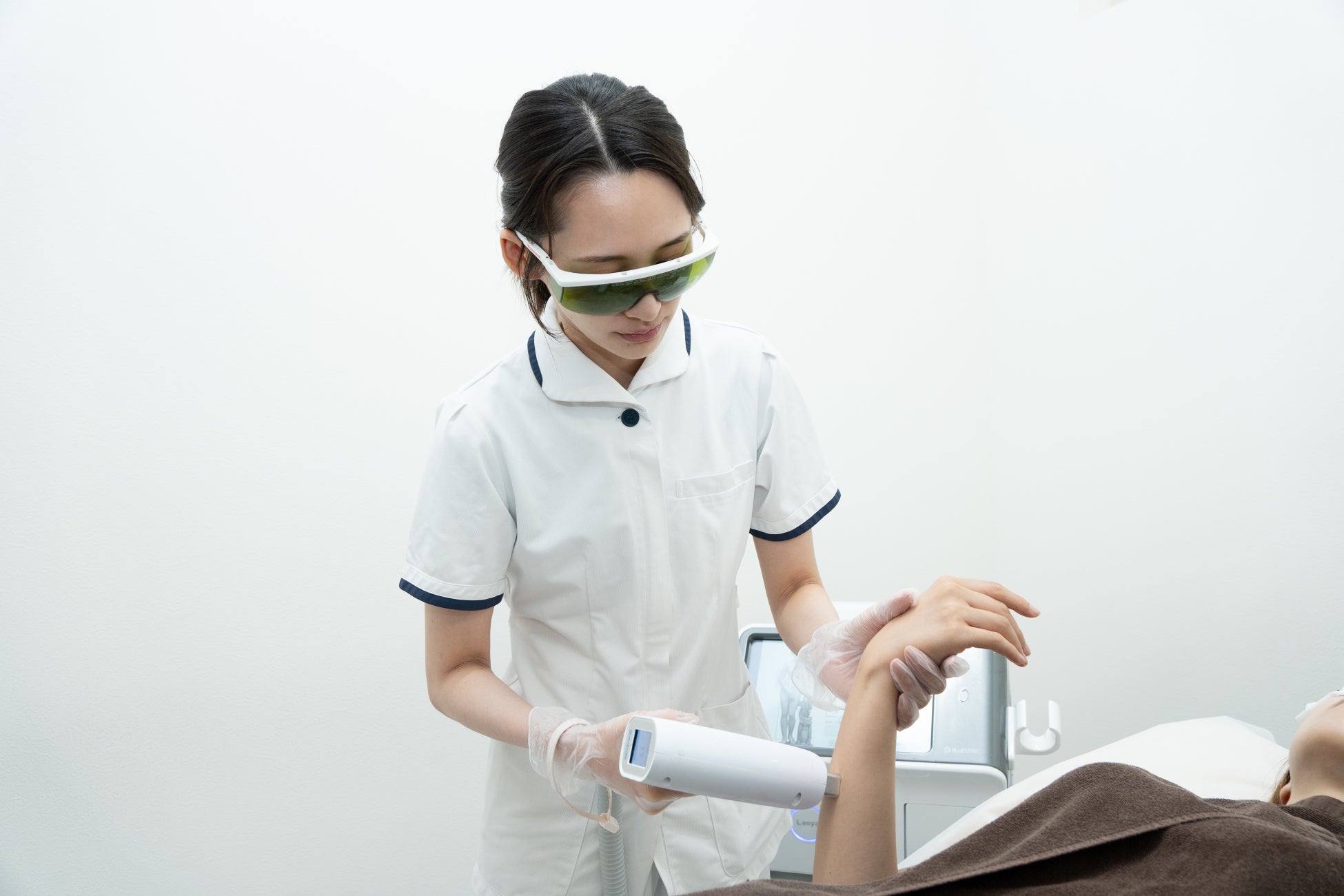 照射時はお痛みに配慮しながら、丁寧に冷却・調節を行い施術いたします。また、完全個室での対応やガウンの着用など、露出を最小限に抑える配慮も徹底しております。