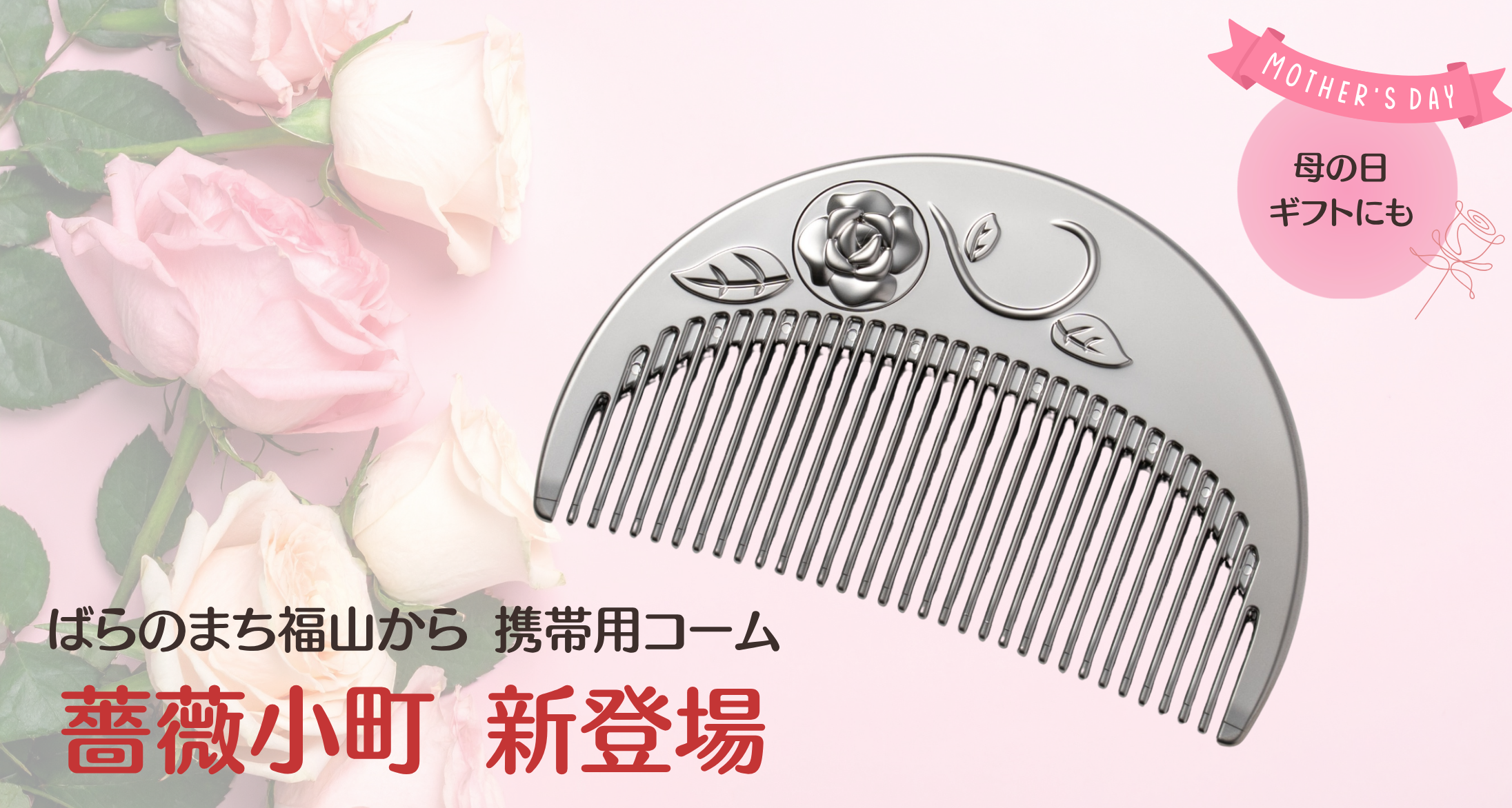 【W受賞】福山ばら祭「ばらグッズ」認定&ばらグッズ審査員特別賞。広島の自動車部品メーカーから母の日ギフトに最適な携帯用ヘアコーム『薔薇小町』を新発売。