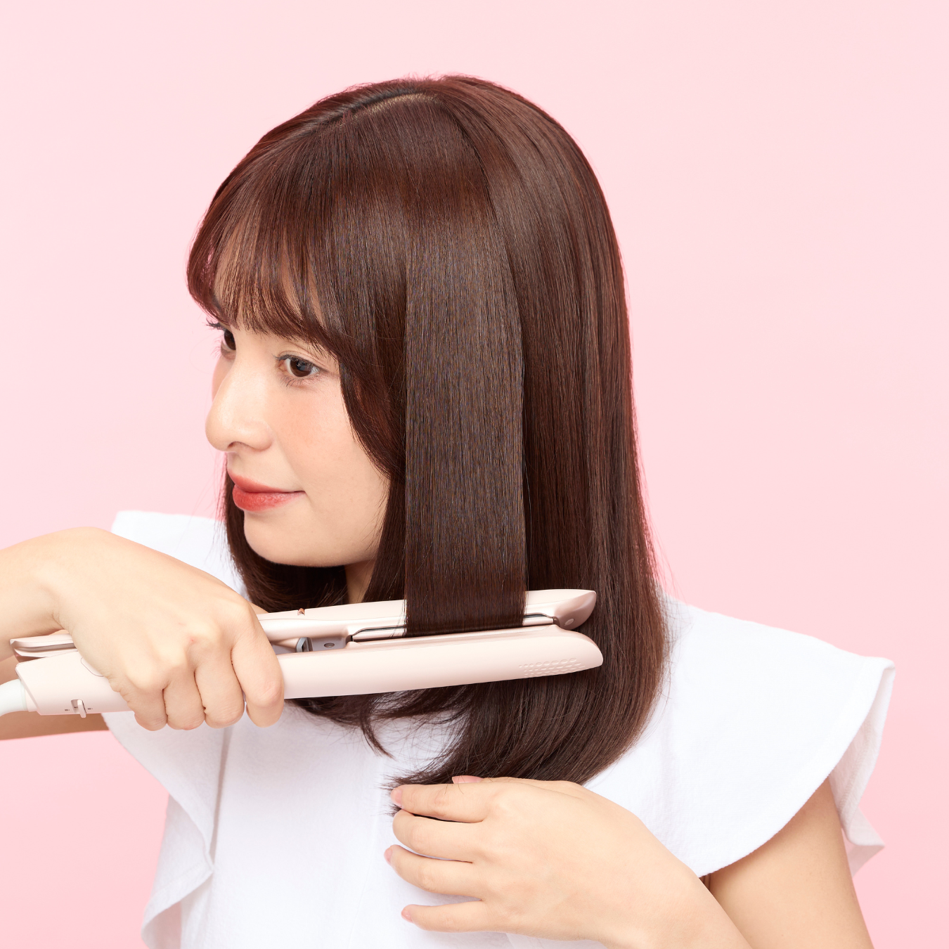 髪を通してもプレートの温度が下がりにくく、スッと通すだけで“するん”とまとまり、忙しい日でもサロン帰りのようなツヤのある仕上がりへ導きます。