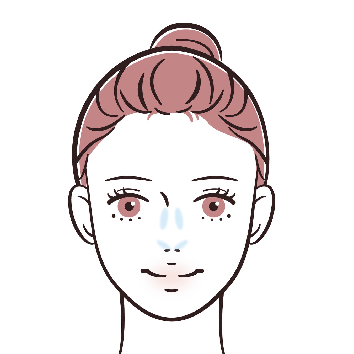 鼻筋に入れるとき、目の横には入れないのがポイント。