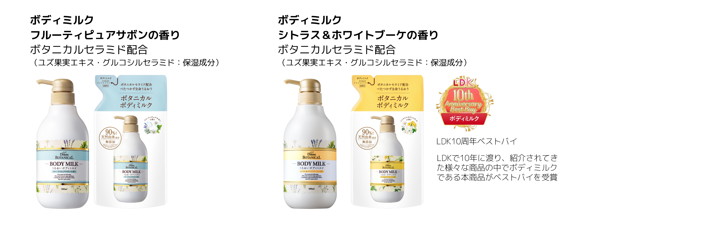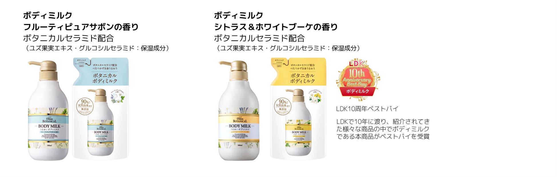 自然にも自分にもやさしいダイアンボタニカルならではの「10種のオーガニックボタニカルエキス※6」や「8種のレアオイル※7」はそのままに、ユズ・コメ・パインの3種のボタニカルセラミド※3を配合した全身用乳液ミスト。