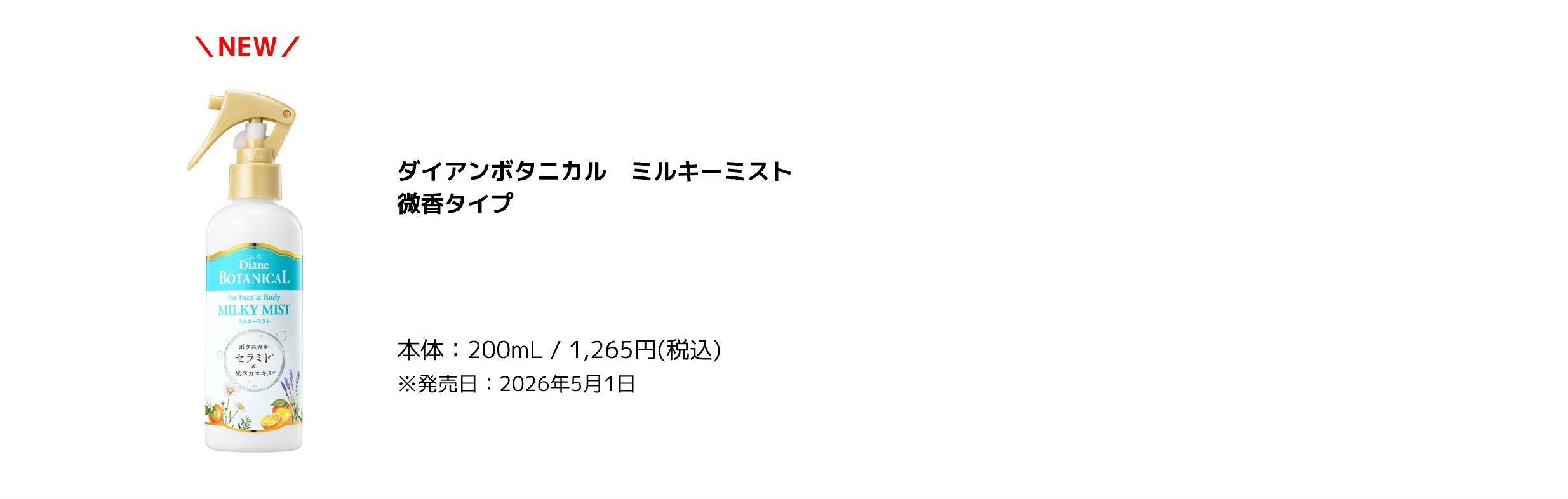 株式会社ネイチャーラボ(本社:東京都渋谷区)は、「やさしさを信じる、生き方がいい。」をコンセプトに展開している『ダイアンボタニカル』より、全身使えるボディミストを2026年5月1日(金)より全国発売いたします。