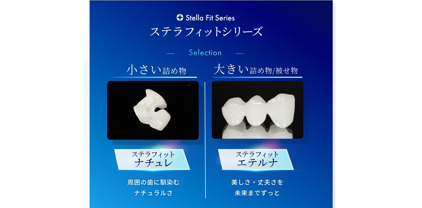 「ステラフィットシリーズ」は、こうしたお客様のお悩みにアプローチすることを目的とした詰め物 / 被せ物です。