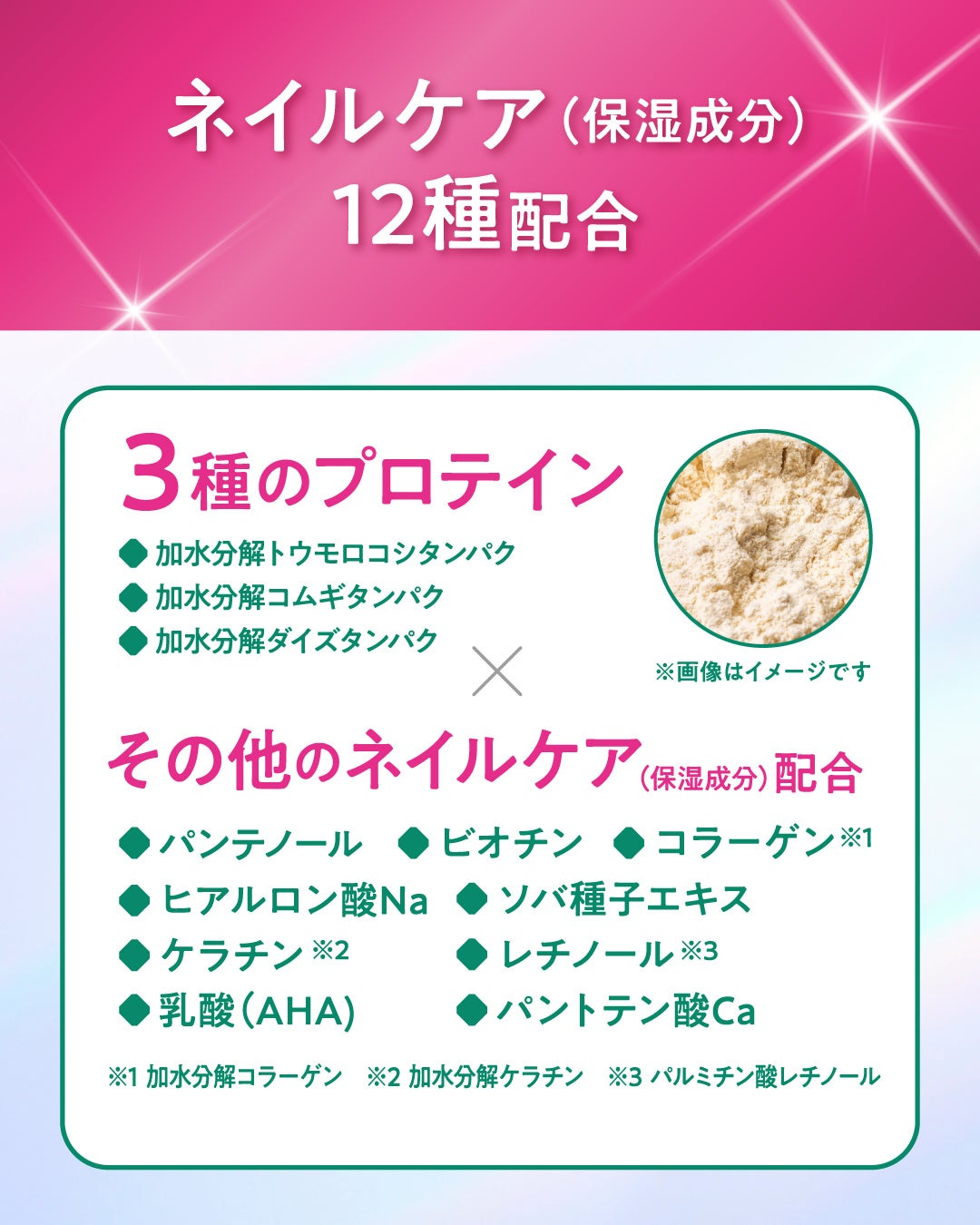 3種のプロテインをはじめとする12種のネイルケア成分(保湿成分)を配合しました 。