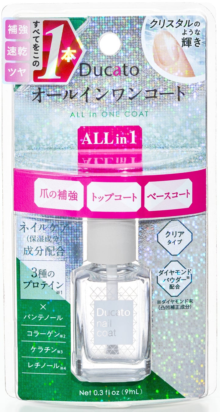 株式会社シャンティ(本部:東京都千代田区、代表取締役社長:井田 仁祥)は、ネイルカラー、ネイルケア、ネイルツールが揃うトータルネイルブランド「Ducato」(デュカート)より、爪の補強・ベースコート・トップコートの機能を1本に集約した「オールインワンコート」を発売いたします 。