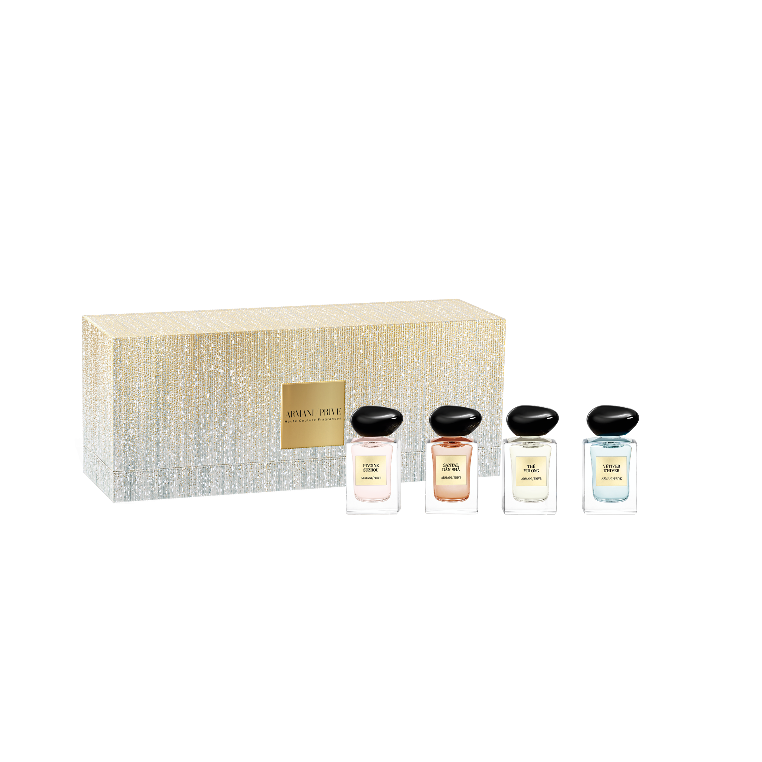 「アルマーニ プリヴェ セット」は、人気の「ユーロン」、「ベチバー ディベール」、「ピヴォワンヌ スジョ」、「サンタル ダン シャ」の4つの香りのミニサイズ(各7.5mL)がセットになっており、「アルマーニ プリヴェ」の人気の香りを色々試してみたい方におすすめです。