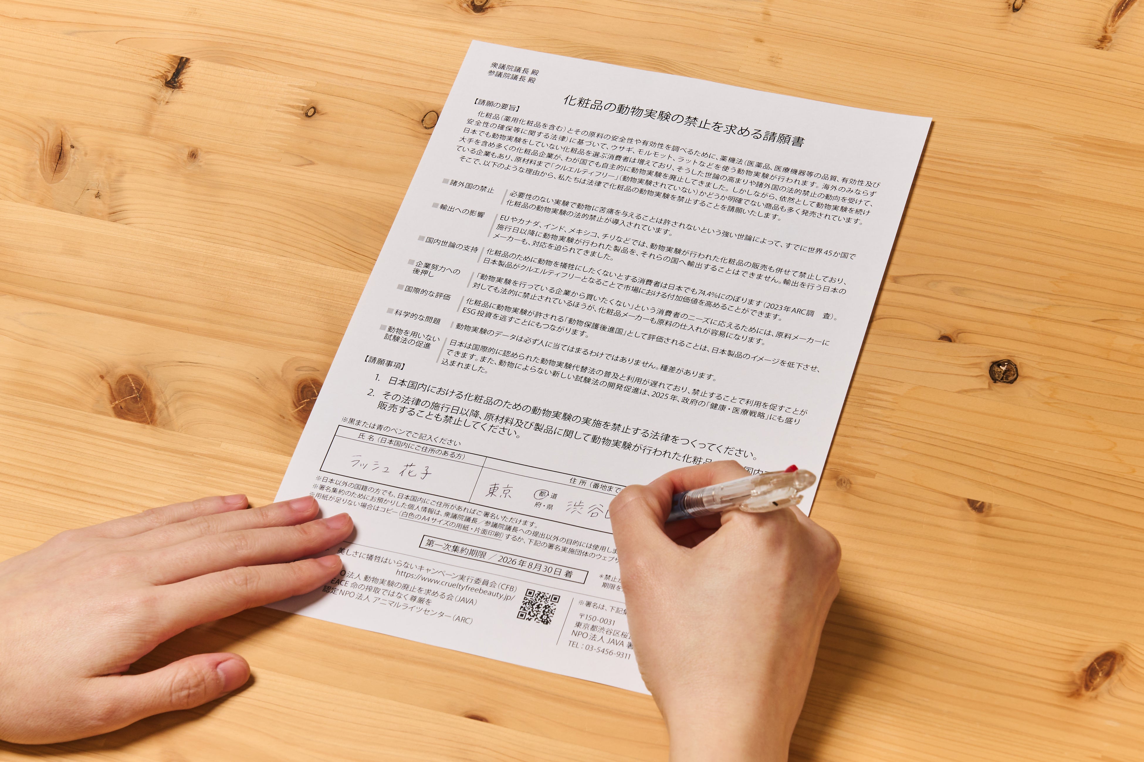 ※署名提出先: 衆議院議長および参議院議長(本署名は「美しさに犠牲はいらないキャンペーン実行委員会」を通じて国会へ提出されます)