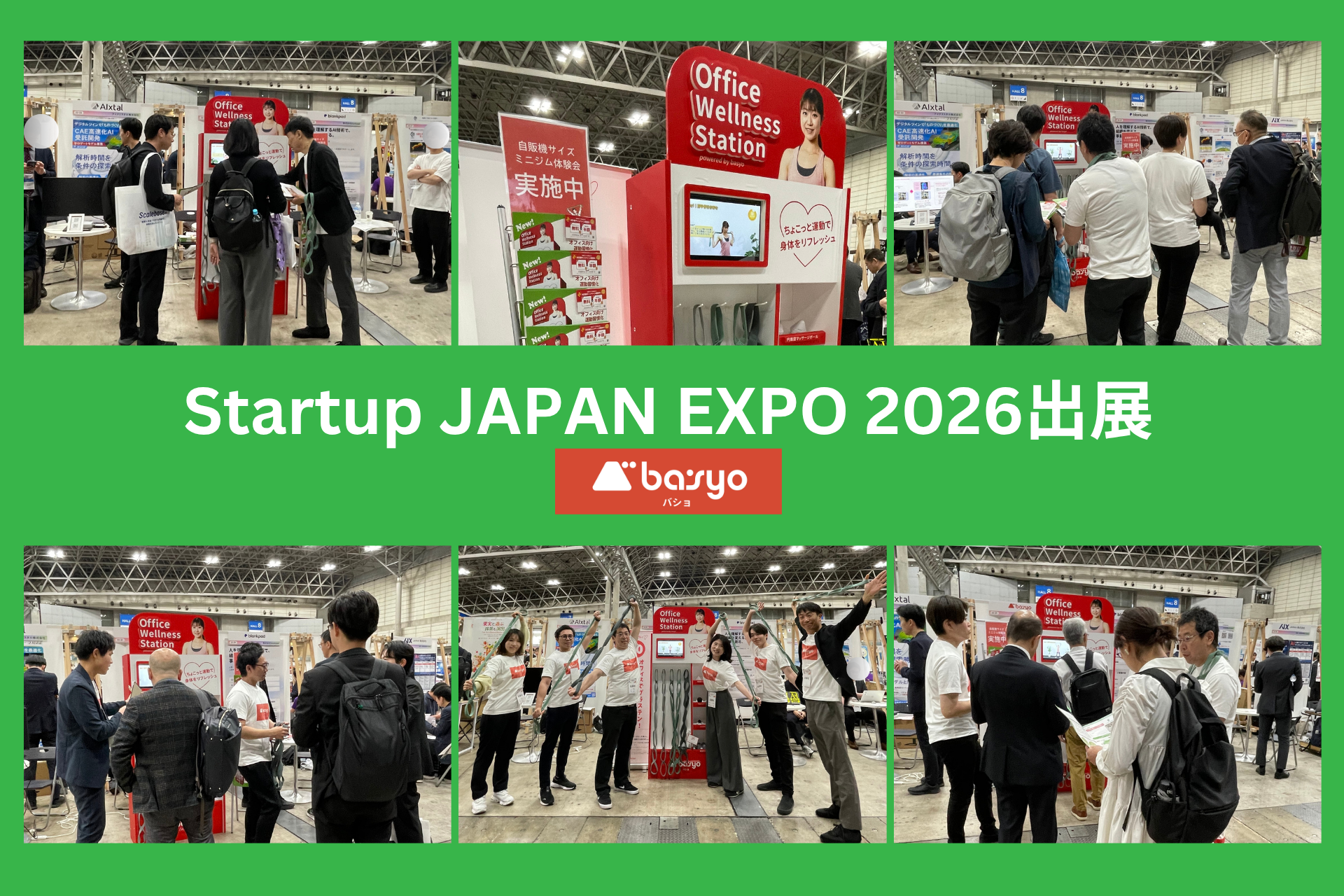 「プロの力で楽しく、無理なく、続けられる」健康習慣づくりを支援するウェルネススタートアップ、株式会社BASYO(本社:東京都新宿区/代表取締役:柳 艶萍)は、2026年4月15日(水)・16日(木)に幕張メッセで開催された日本最大級のスタートアップ展示会「Startup JAPAN EXPO 2026」に出展いたしました。