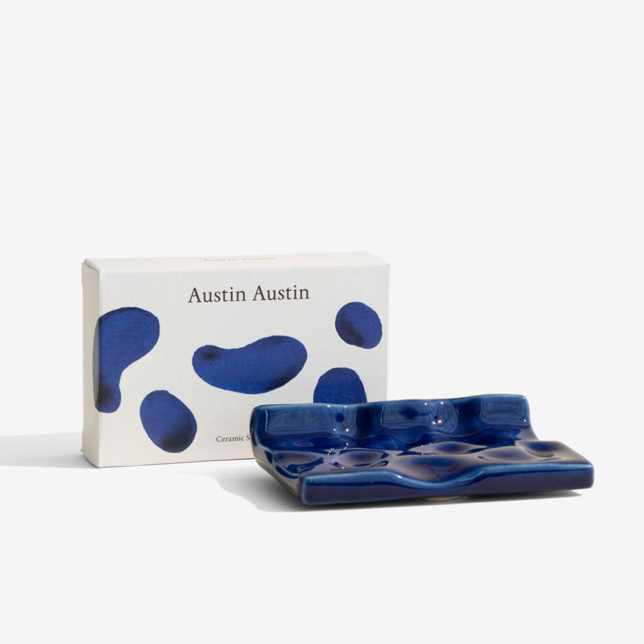 硬くて耐久性に優れた炻器(ストーンウェア)を素材に、型押し成形ののち、職人の手で釉薬(グレーズ)を丁寧に塗り仕上げています。ソープバーをそのまま置いて使えるデザインです。イギリスにて少量生産にこだわった、クラフトマンシップを感じられるコレクションです。