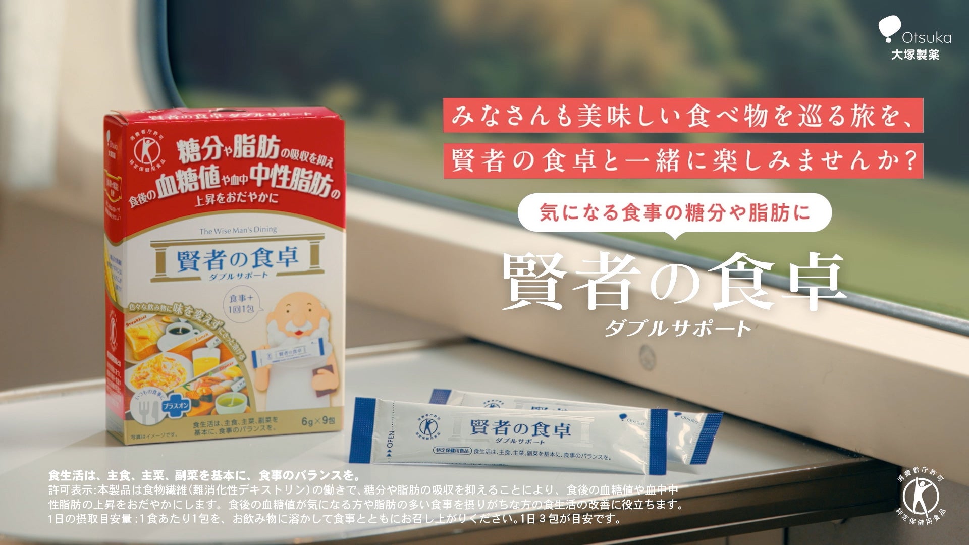 「賢者の食卓 ダブルサポート」は食後の血糖値が気になる方や脂肪の多い食事を摂りがちな方の食生活の改善に役立つ特定保健用食品です。美味しい食事を楽しむ旅行「食旅」のおともにおすすめの品として発信を続けてきました。2025年には、駒木結衣さんが出演する、旅の始まりに味わう駅弁(=旅弁)がテーマのWEBムービー「本日、旅弁日和。」を公開しました。