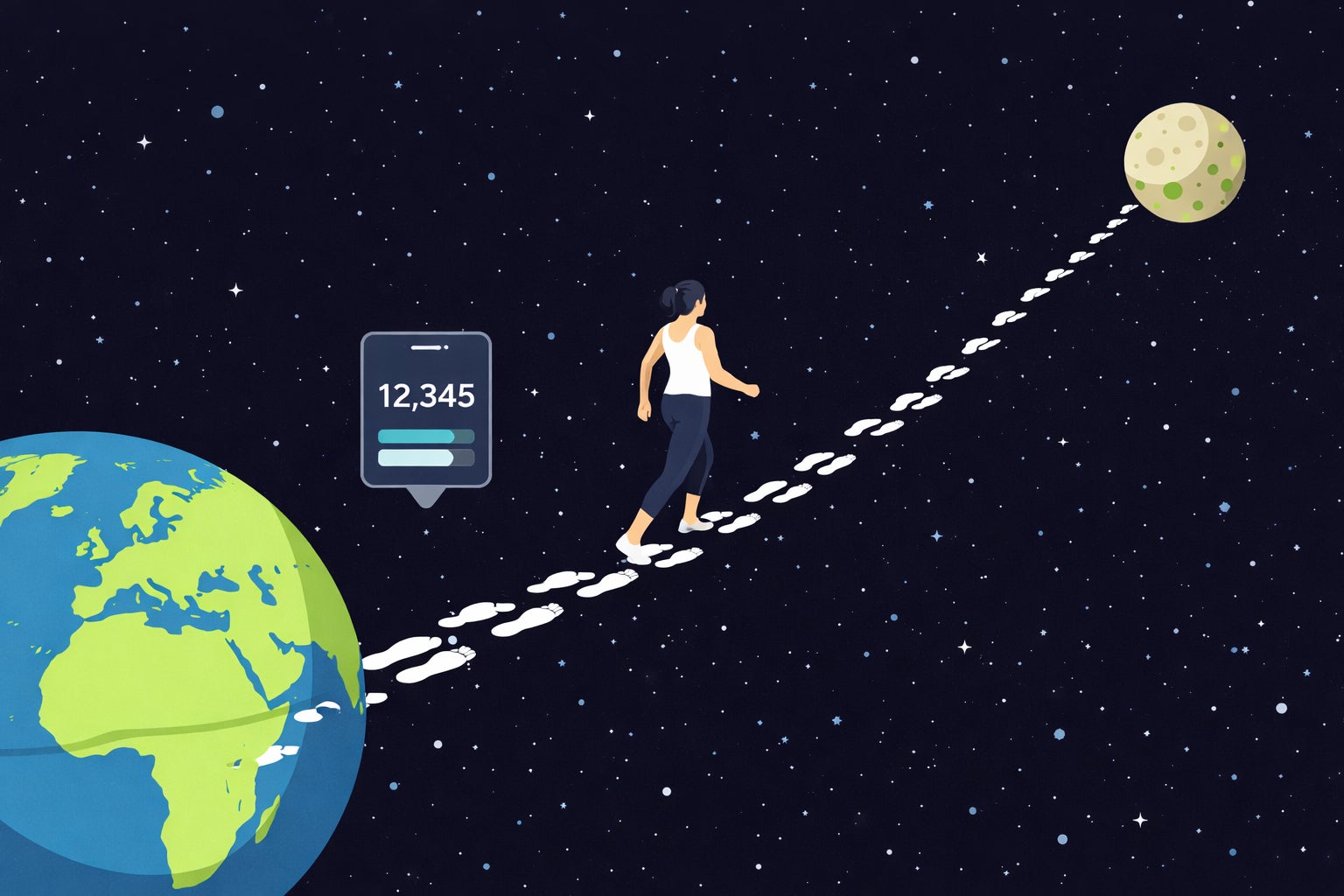 zen place公式アプリの歩数計機能を活用し、期間中のクライアント全員の歩数を合算。目標は地球から月までの約38万km(約4億9600万歩)の達成です。スタジオのレッスンに加え、通勤・買い物・散歩といった日常の一歩一歩が、コミュニティ全体の大きな目標達成へとつながります。