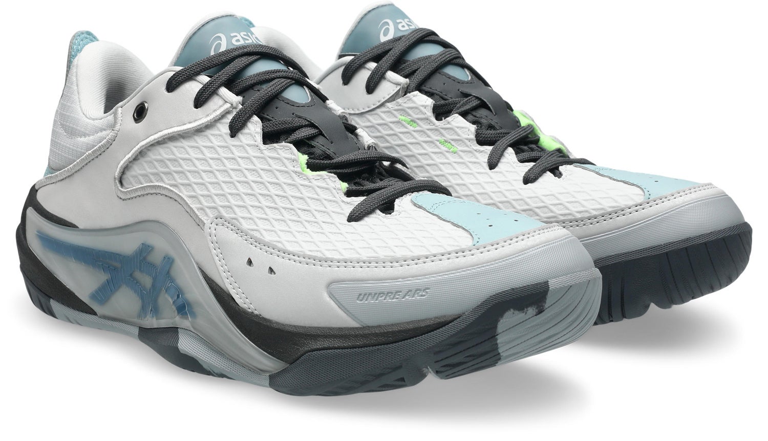 アッパー(甲被)は、メッシュ生地にポリウレタン素材のフィルムを貼り合わせることで、特に力のかかりやすい前方外側への動きをサポートします。今回のモデルから、ステップ時に壁のような役割をもたせることで横ブレを抑え、逆方向への力強く素早い切り返しをサポートする「サイドウォール構造」を外付けの樹脂パーツに変更し、「UNPRE ARS(アンプレアルス)」シリーズの特徴である機能が視覚的、体感的にもアップデートされています。