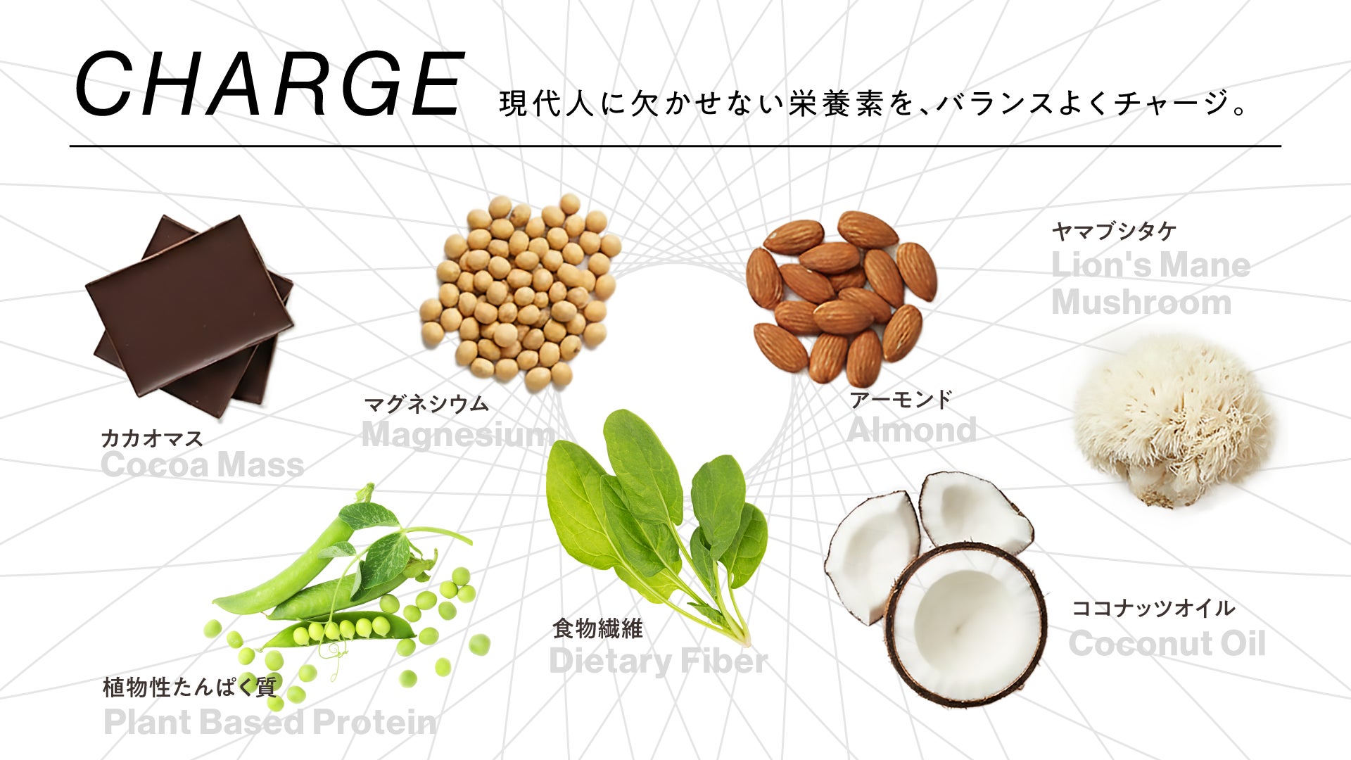 <CHARGE>現代人に​欠かせない​栄養素を、​バランスよく​チャージ。​