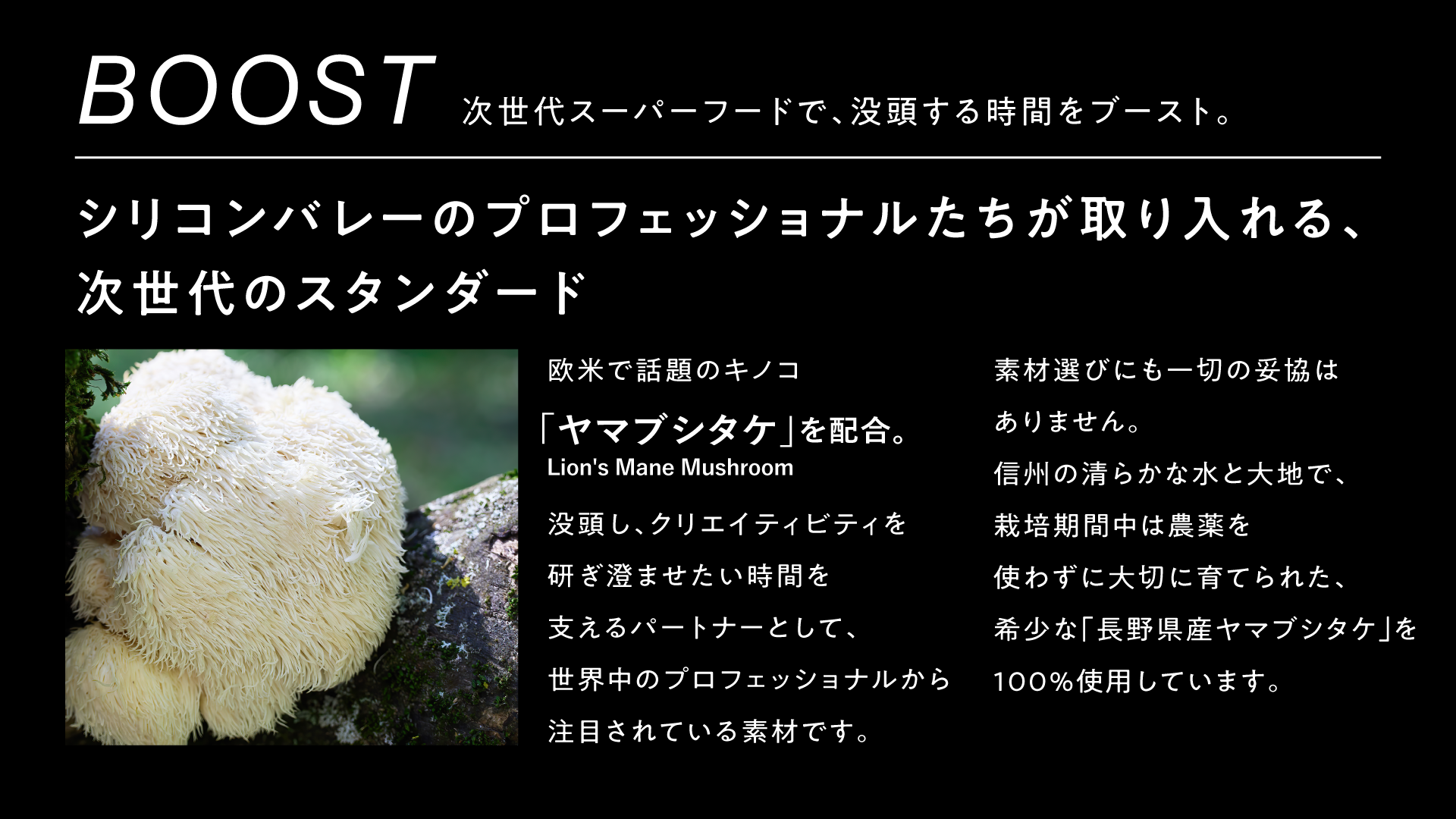<BOOST>次世代スーパーフードで、没頭する時間をブースト。