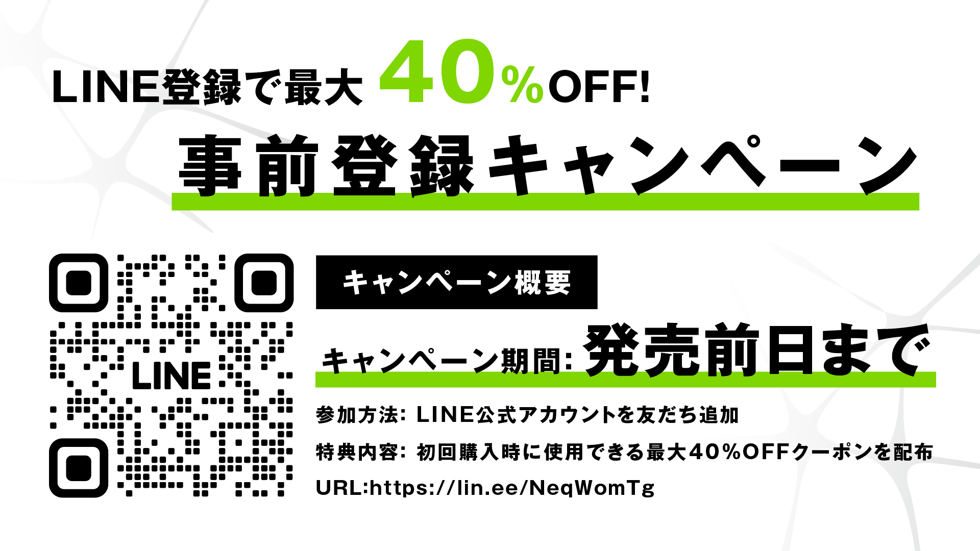 LINE登録で最大40%OFF!事前登録キャンペーンを実施中