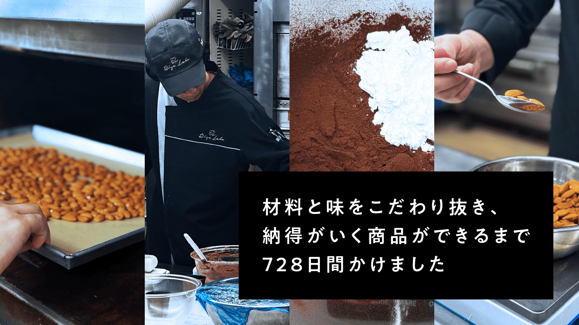 身体と日々のパフォーマンスを第一に考えた理想的な商品設計のため、植物性食品のみを用い、白砂糖・小麦・乳製品・保存料を一切使わず、植物性由来の甘みのみでさらに糖質5g以下という厳しい条件のもと開発を進めました。