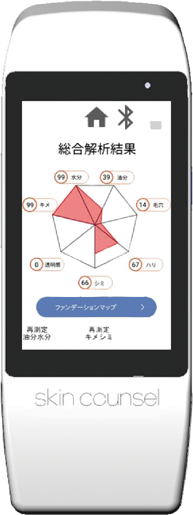 現在の肌状態だけでなく、これから現れやすい肌変化の兆しまで分析する独自の肌分析。