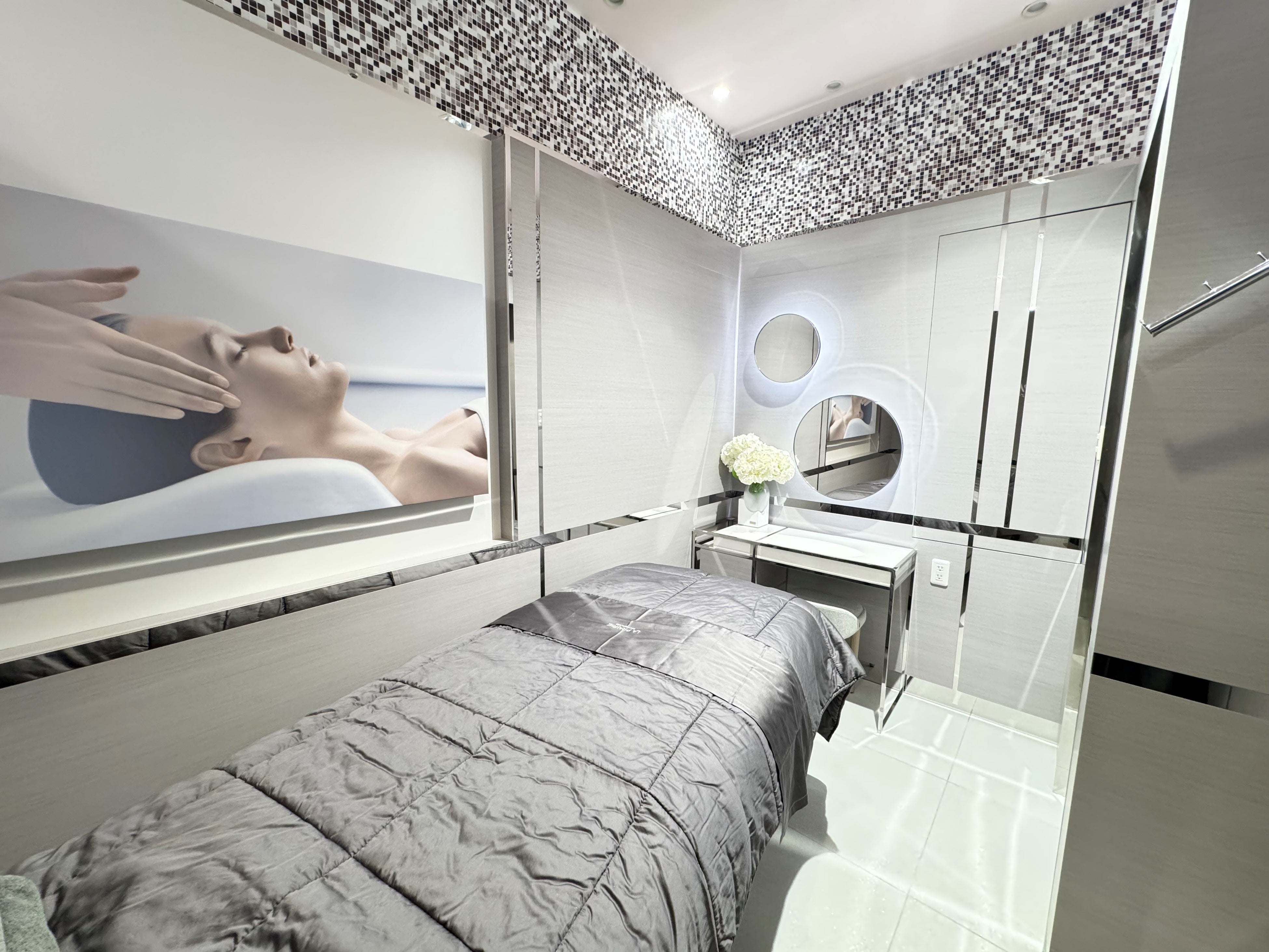 渋谷ヒカリエ ShinQs 地下1階のトリートメントルームで、スイス発ラグジュアリーブランドによるオールハンドの本格フェイシャルを体験できる贅沢なひととき。