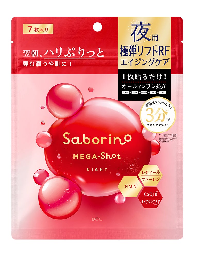 サボリーノ メガショット 夜用ハリツヤRFマスク <フェイスマスク> 7枚入り(93mL) ¥770(税込)