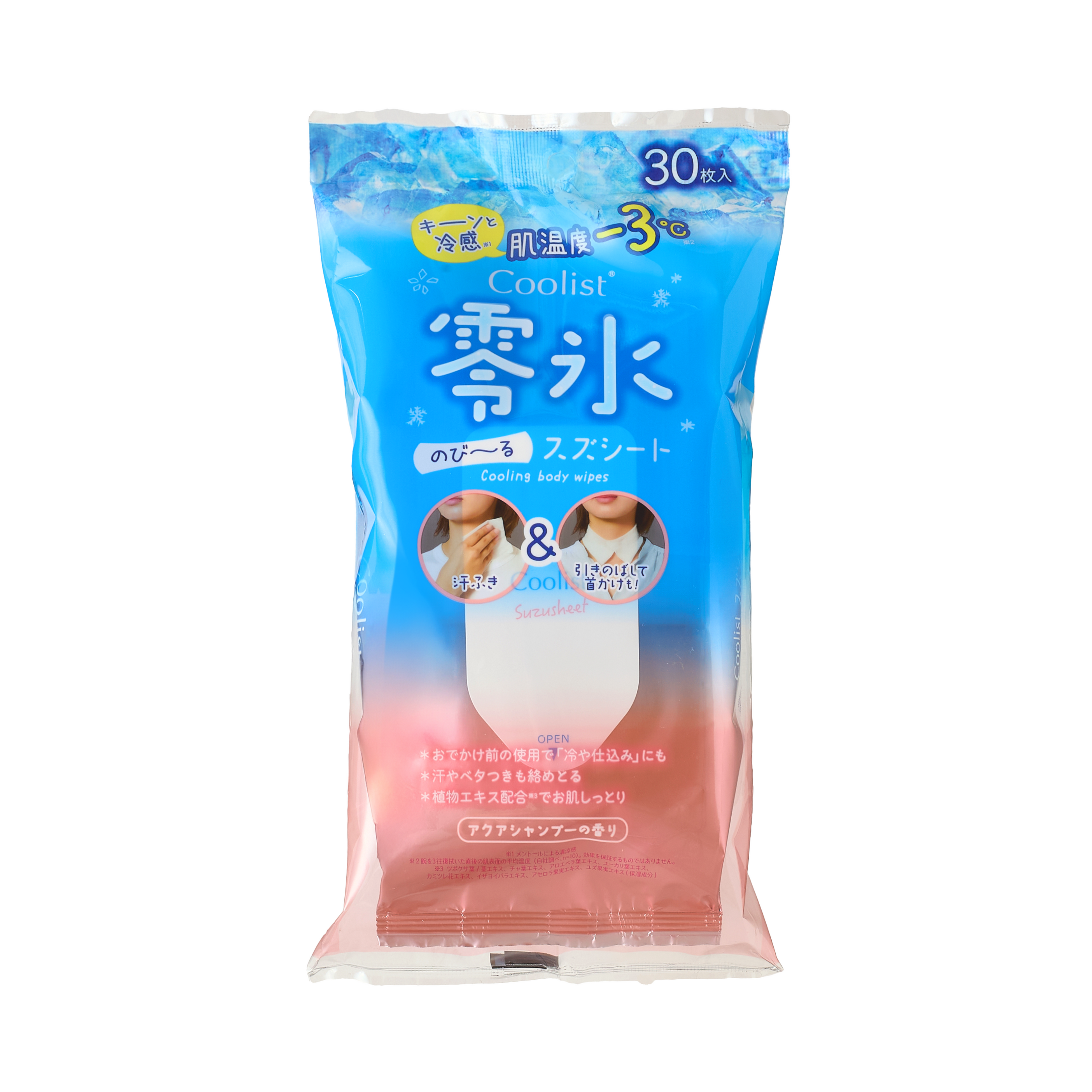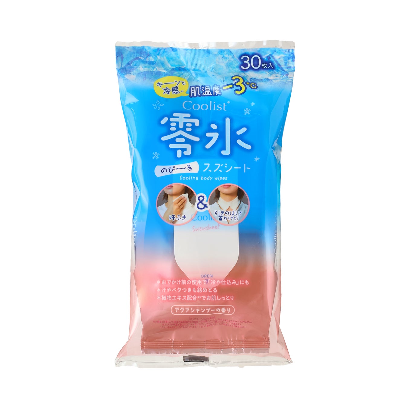 汗やベタつきを拭き取るのはもちろん、伸びるシートで首に掛けて使用可能なクールボディーシート。