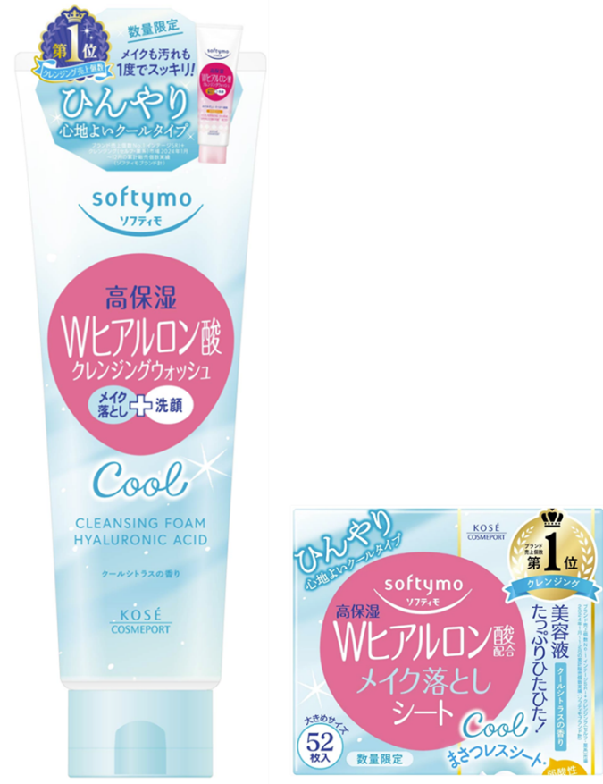 コーセーコスメポート株式会社(本社:東京都中央区、代表取締役社長:小林 孝雄)は、近年の猛暑環境で帰宅後のクレンジングを快適におこないたいニーズに着目し、クレンジングブランド『ソフティモ』から、「クレンジングウォッシュ(ヒアルロン酸)」「メイク落としシート(ヒアルロン酸)」のクールタイプ(2品目2品種、ノープリントプライス)を2026年5月29日より全国の量販店・ドラッグストアを中心に数量限定で順次発売します。