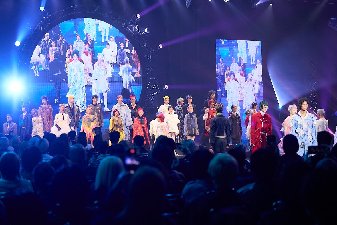 ファイナルステージでは、3部門のうち「クリエイティブ デザイン アワード」の決勝大会が開催されました。id2025ファイナルのテーマは、「Optimistic Attitude(オプティミスティック アティチュード)〜ポジティブで楽観的な姿勢〜」が設定され、国内予選を勝ち抜いた30名と、海外(3か国)のチャンピオン6名が競いあいました。アワードセレモニーのランウェイでは、ファッションショーさながらに華やかなモデルウォークが披露されました。