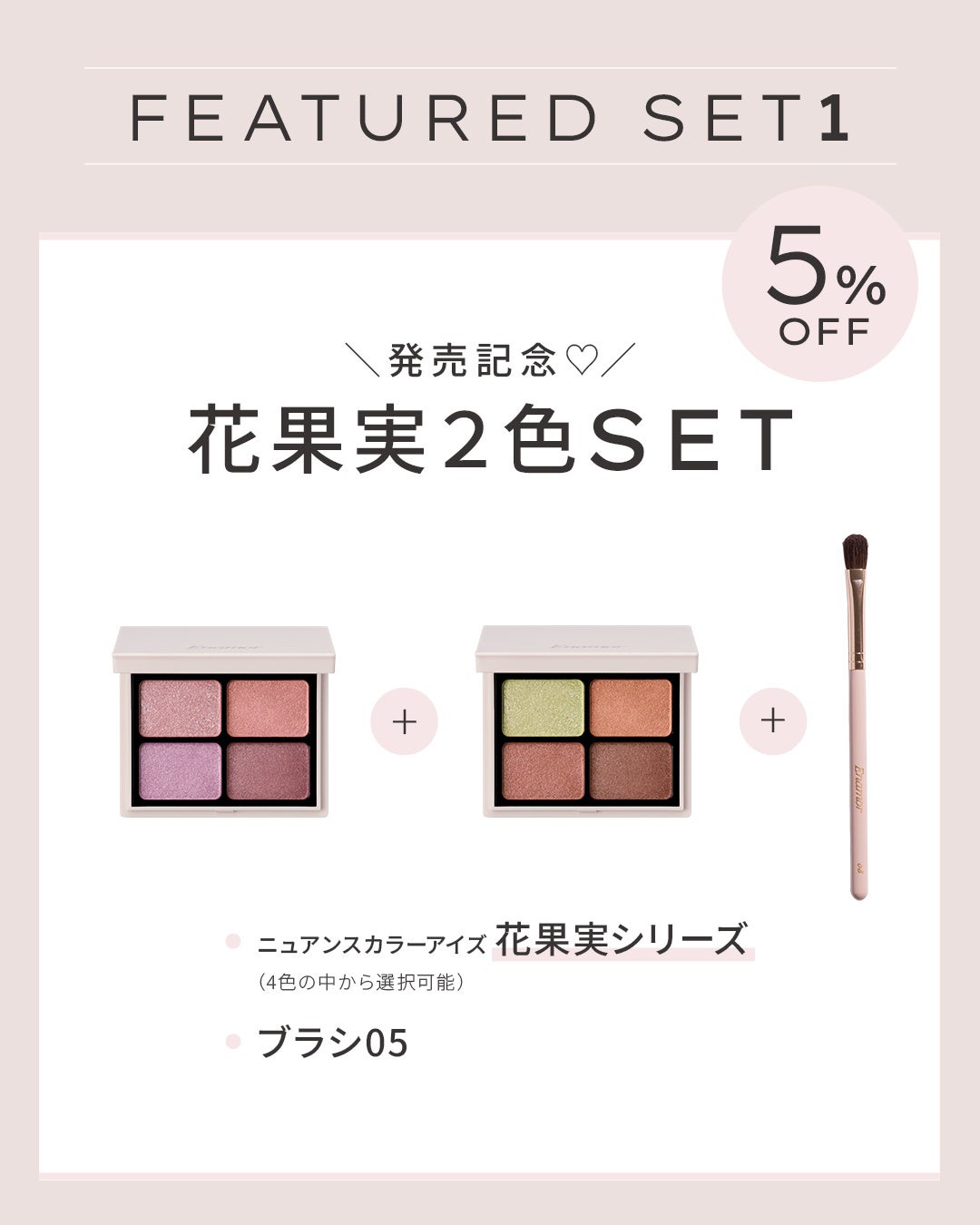 心ゆくまで試せるフルラインナップ :新作アイシャドウ「花果実シリーズ」はもちろん、普段はオンライン限定展開のメイクブラシを含む”全商品”を一挙にお試し・ご購入いただけます 。