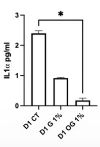 対照群およびG(グリセリン)処理モデルと比較して、IL-1αの放出が有意に減少した。