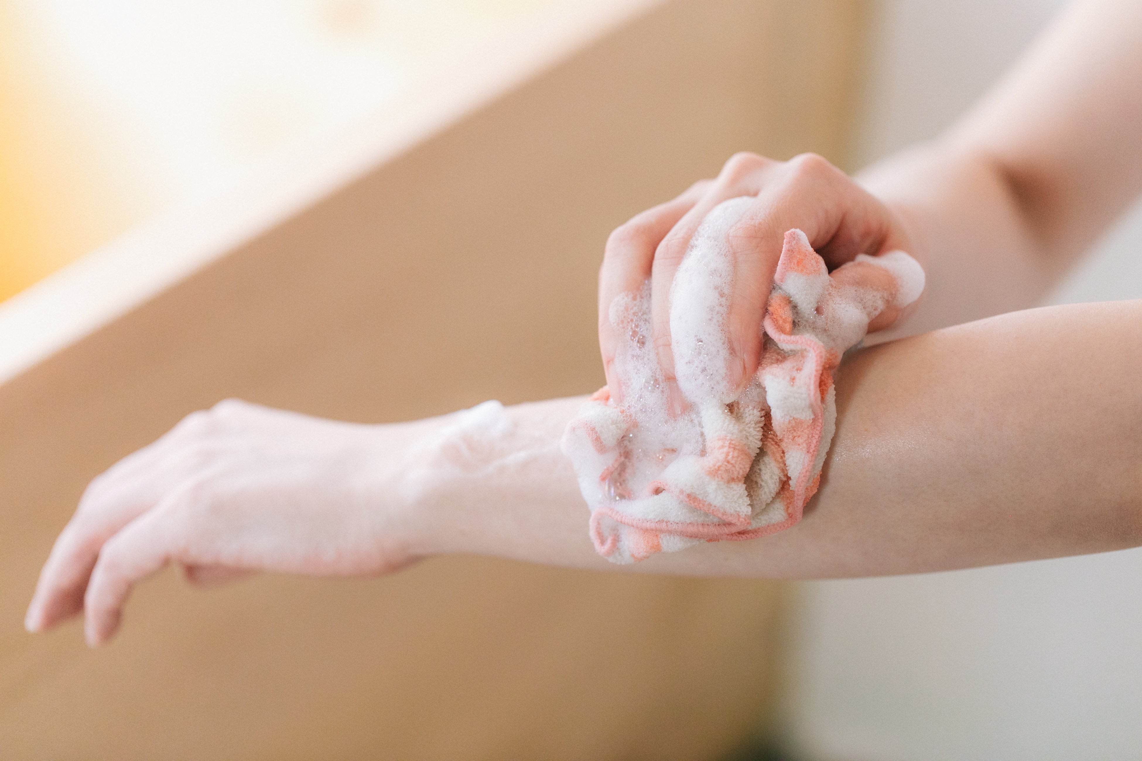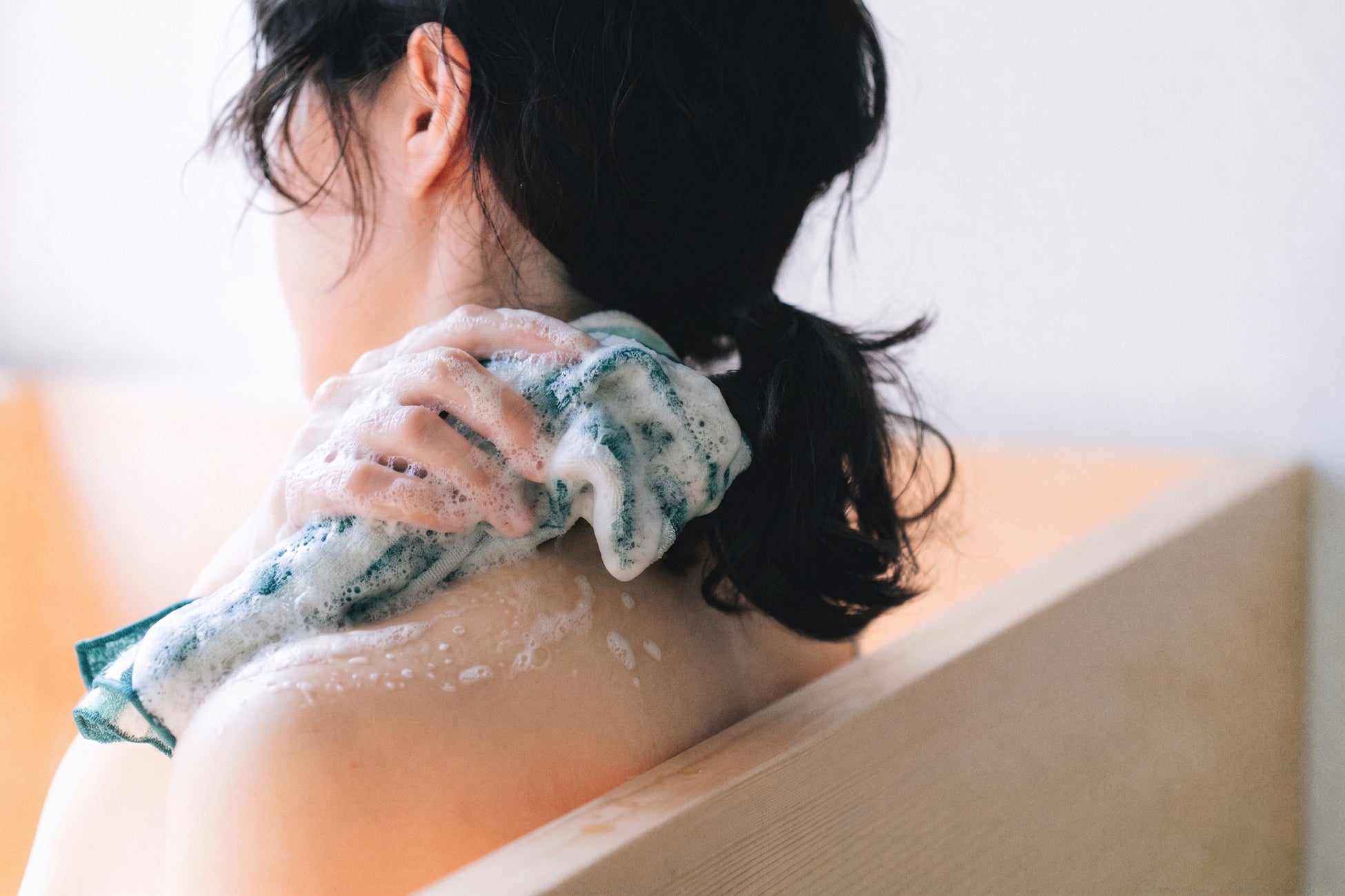 『OFURO』は、ナイロンのボディタオルでは肌への刺激が気になる一方で、手洗いだけでは物足りなさを感じている方に向けて開発されました。素肌に触れるものだからこそ、優しさと清潔さ、そして気持ち良い洗い心地を追求した一枚です。