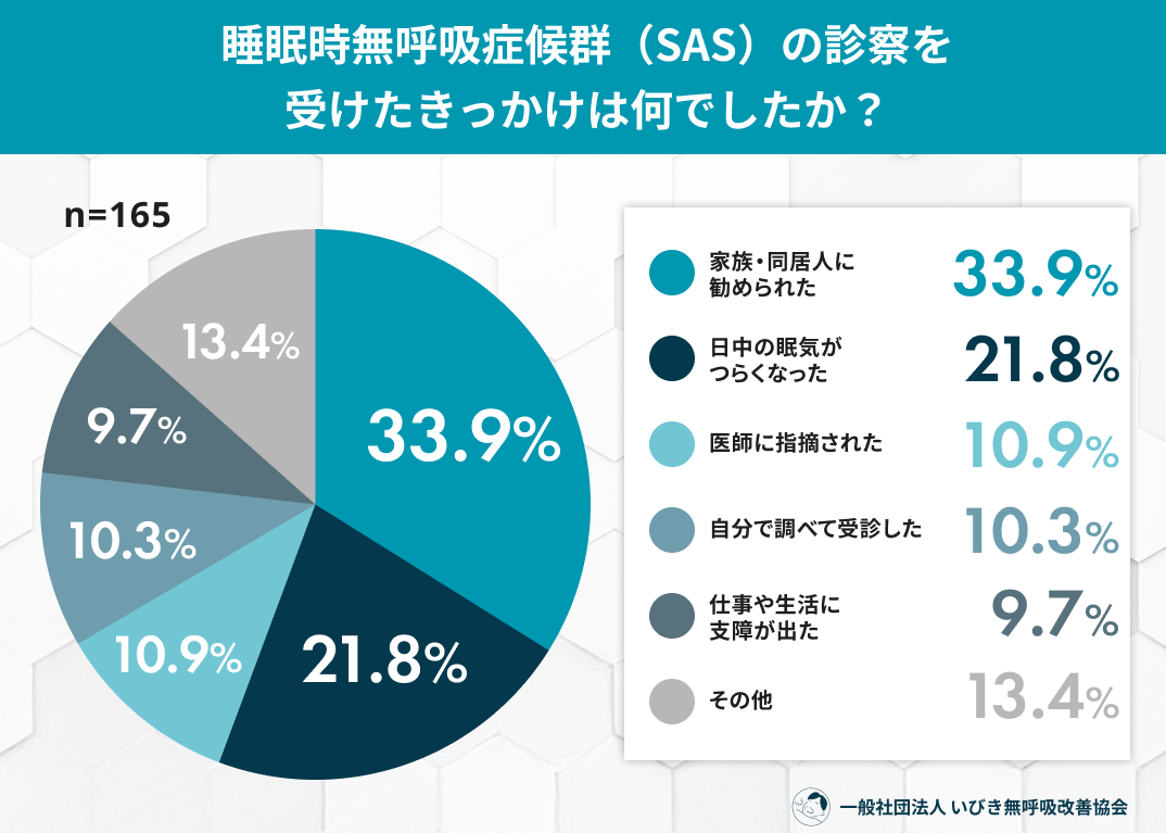 受診のきっかけ:33.9%が「家族・同居人の勧め」と回答。身近な人の指摘が早期発見のカギ