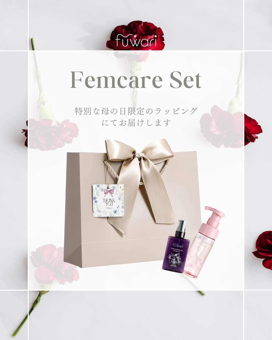 今回fuwariでは、年齢やライフステージによる変化と向き合う女性に寄り添うフェムケアアイテムを、母の日限定ギフトセットとして提案。実用性とケアの両立を兼ね備えたギフトとして、大切な方への贈り物はもちろん、ご自身へのセルフギフトにもおすすめです。