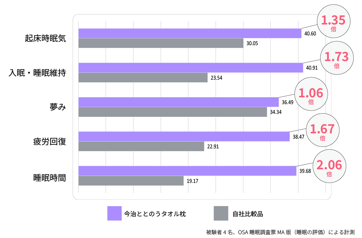 OSA睡眠調査票を使用した自社調べでは、各項目で効果を感じたという結果が出ました。