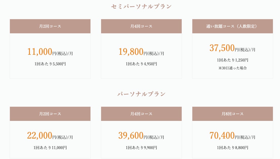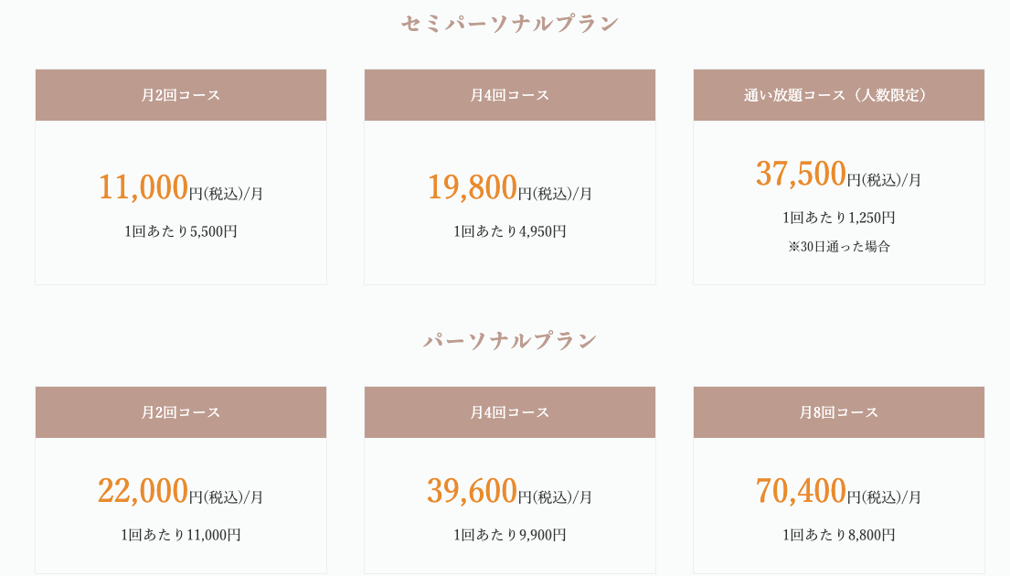 Pilates Mee 幕張本郷店の料金体系