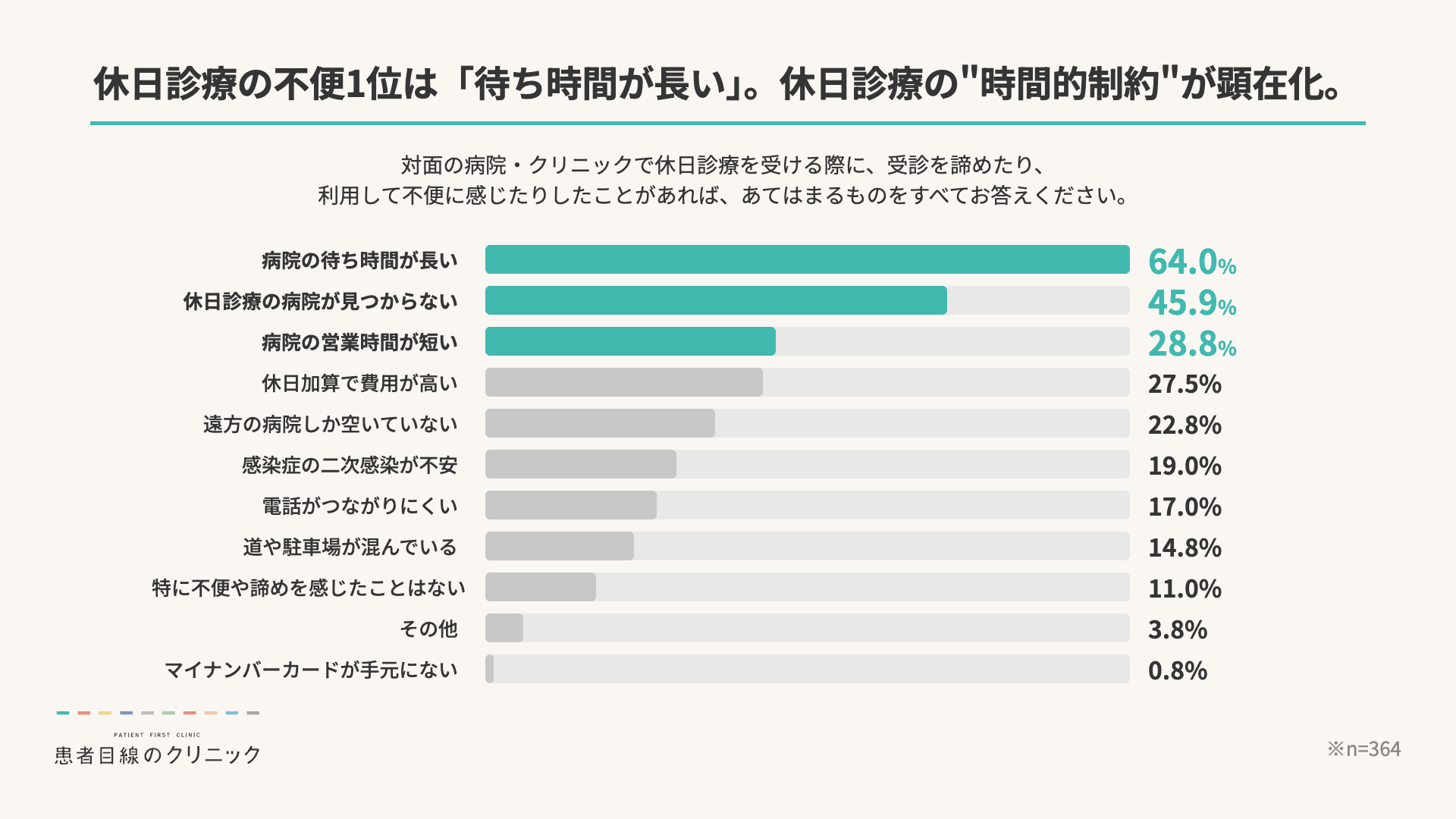 休日診療の不便1位は「待ち時間が長い」。休日診療の“時間的制約”が顕在化。