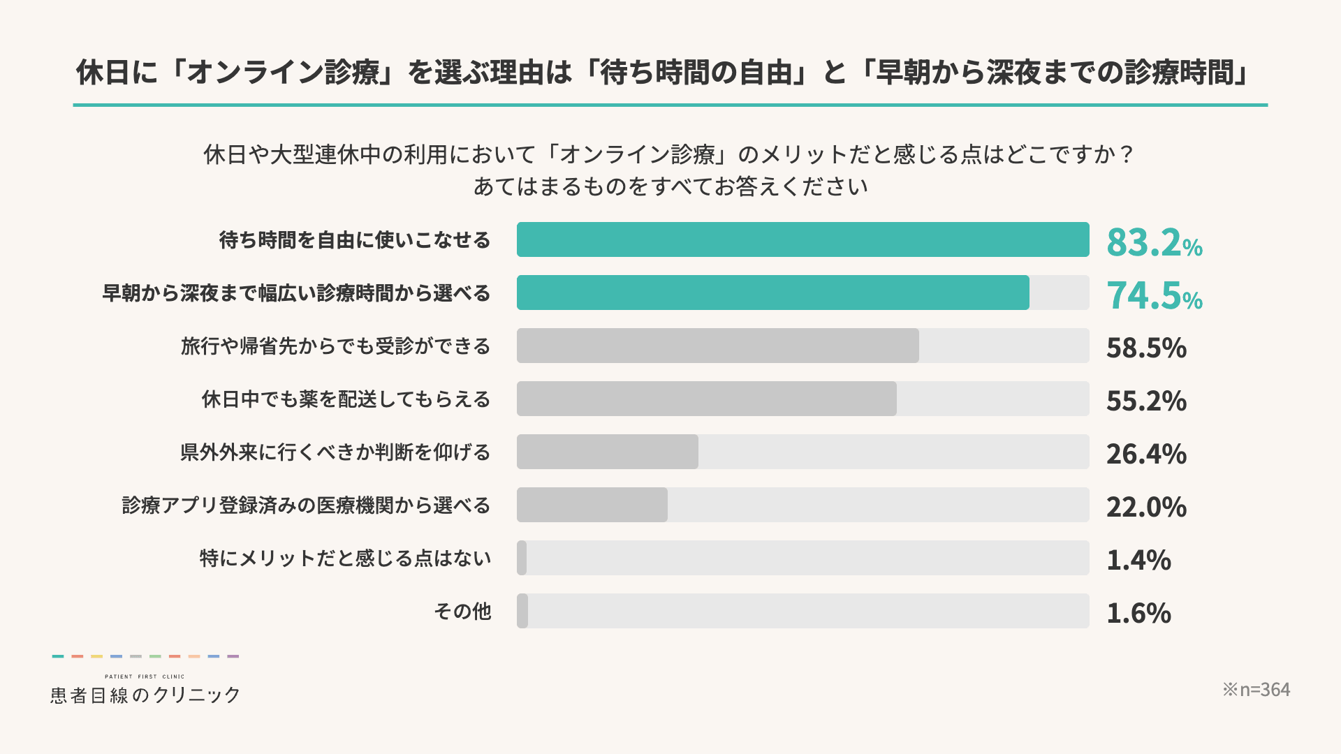 調査対象:「患者目線のクリニック」でオンライン診療を利用したことのある全国20代〜60代の男女 364名