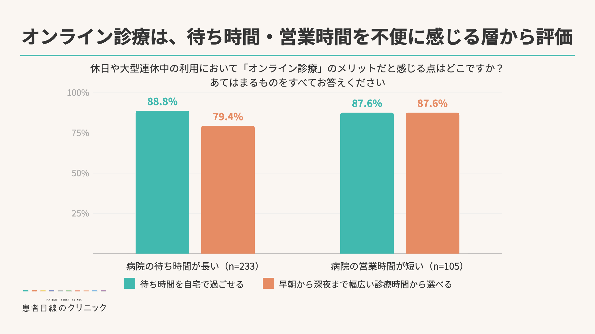 「待ち時間の自由」と「早朝から深夜までの診療時間」に支持