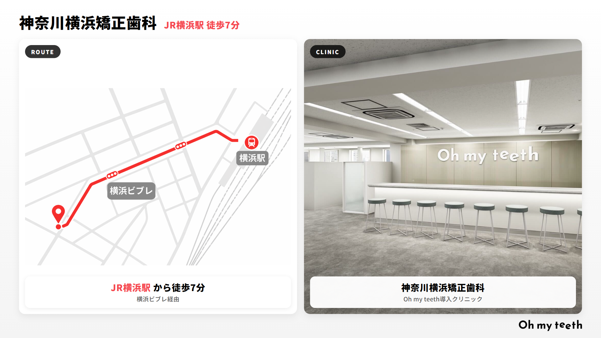 神奈川のユーザーからは、”もう少し近くに拠点があれば” という声を、実際にいただいています。横浜に Oh my teeth 導入クリニックをオープンするのは、その宿題への回答です。
