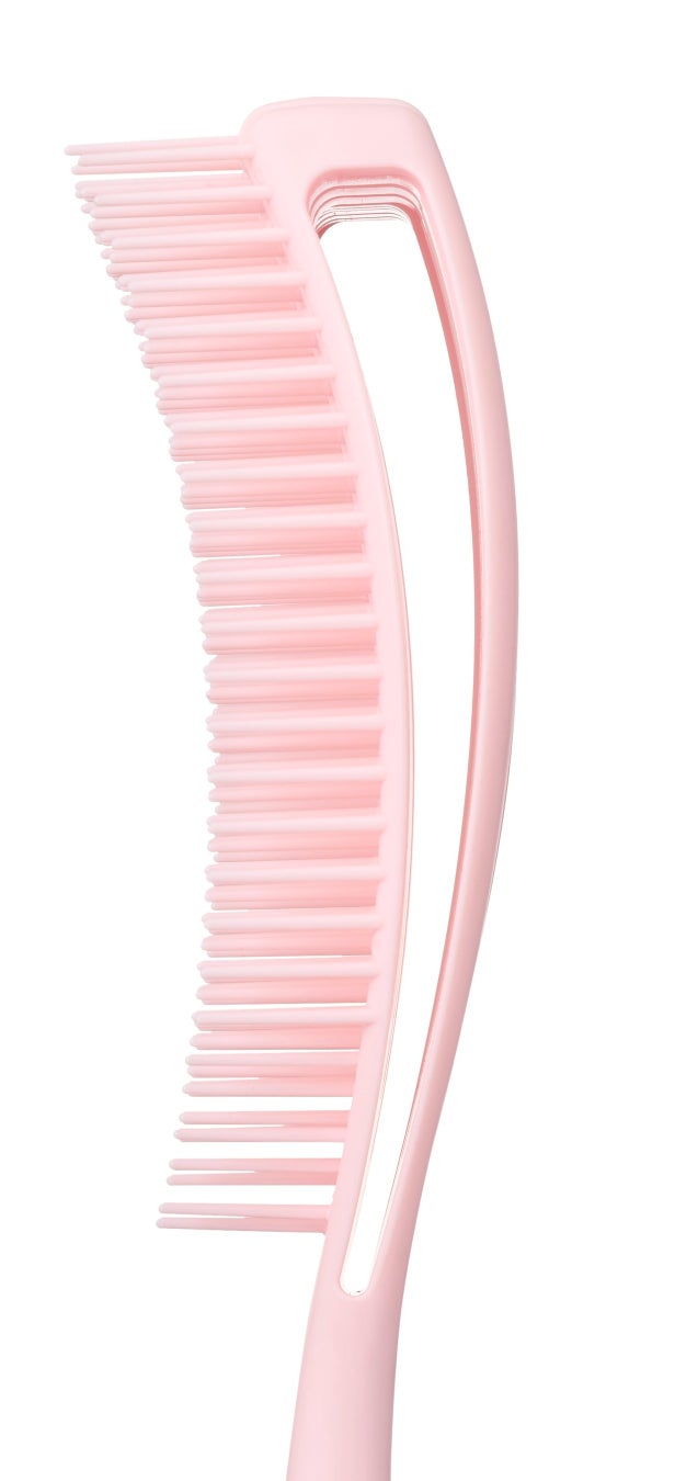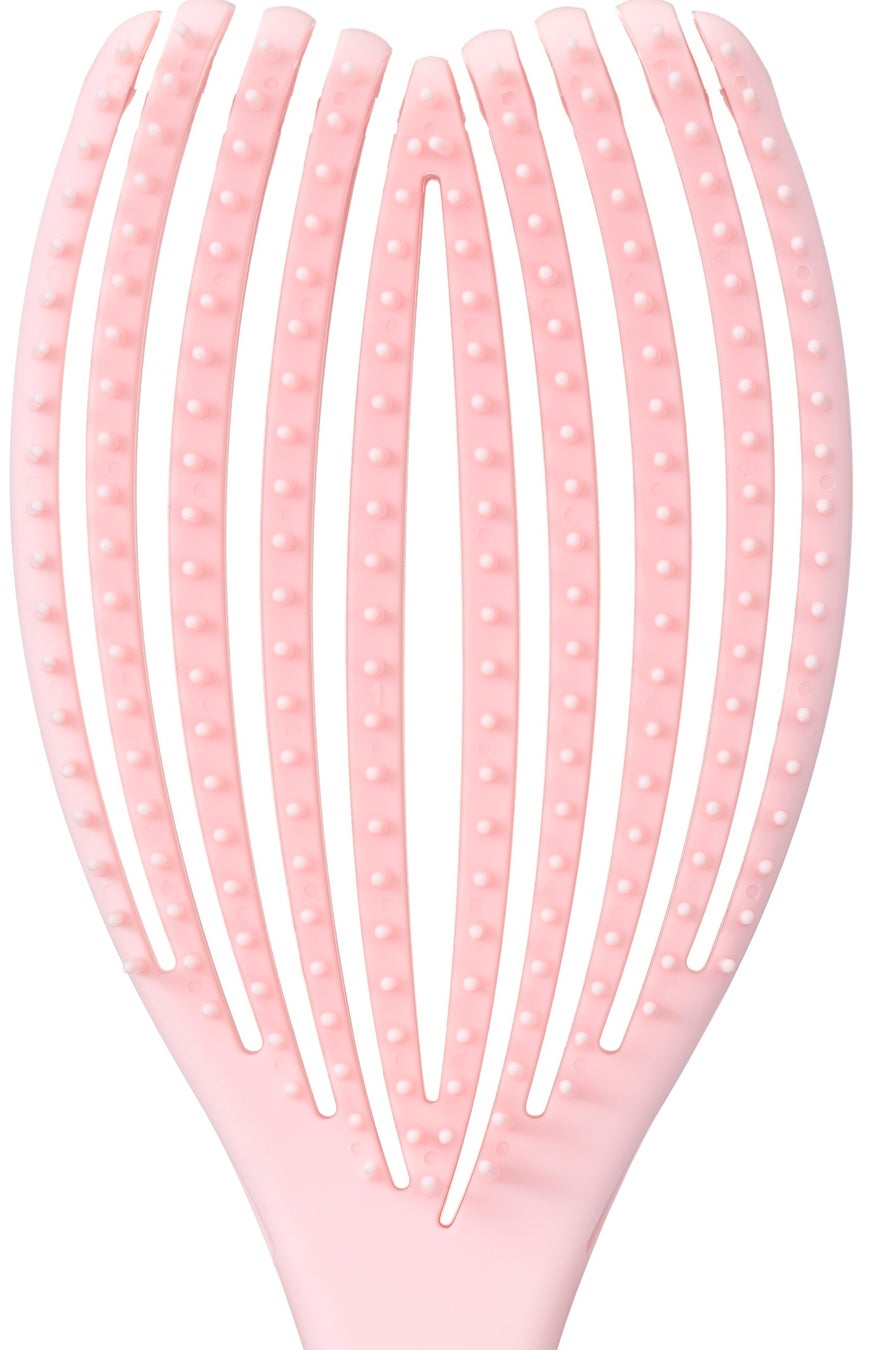 カーブした大きなブラシ面が、頭を包み込むようにフィットし、心地よい弾力で、ブラッシングの度に頭皮をやさしくほぐします。
