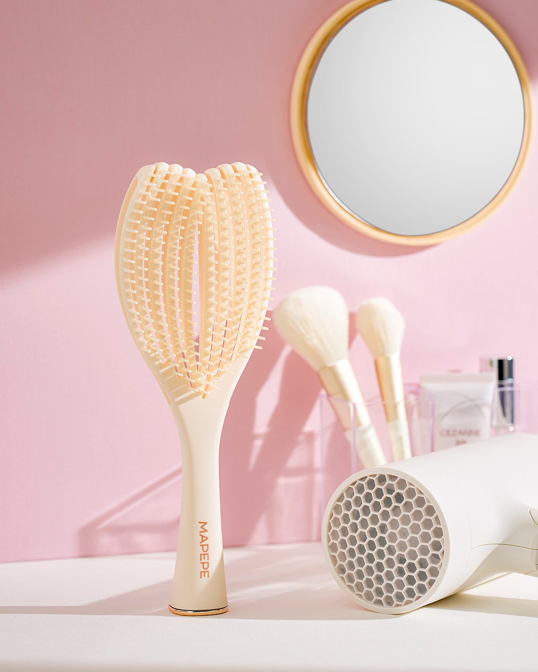 「フレックススタンドブラシ」は、慌ただしい時間帯や手狭なドレッサーにもスっと立てて置けて、使う時もパっと手に取れる「セルフ・スタンディング構造」を採用。ドライヤーやスタイリングの合間の“ちょい置き”もスムーズな自立型ヘアブラシです。