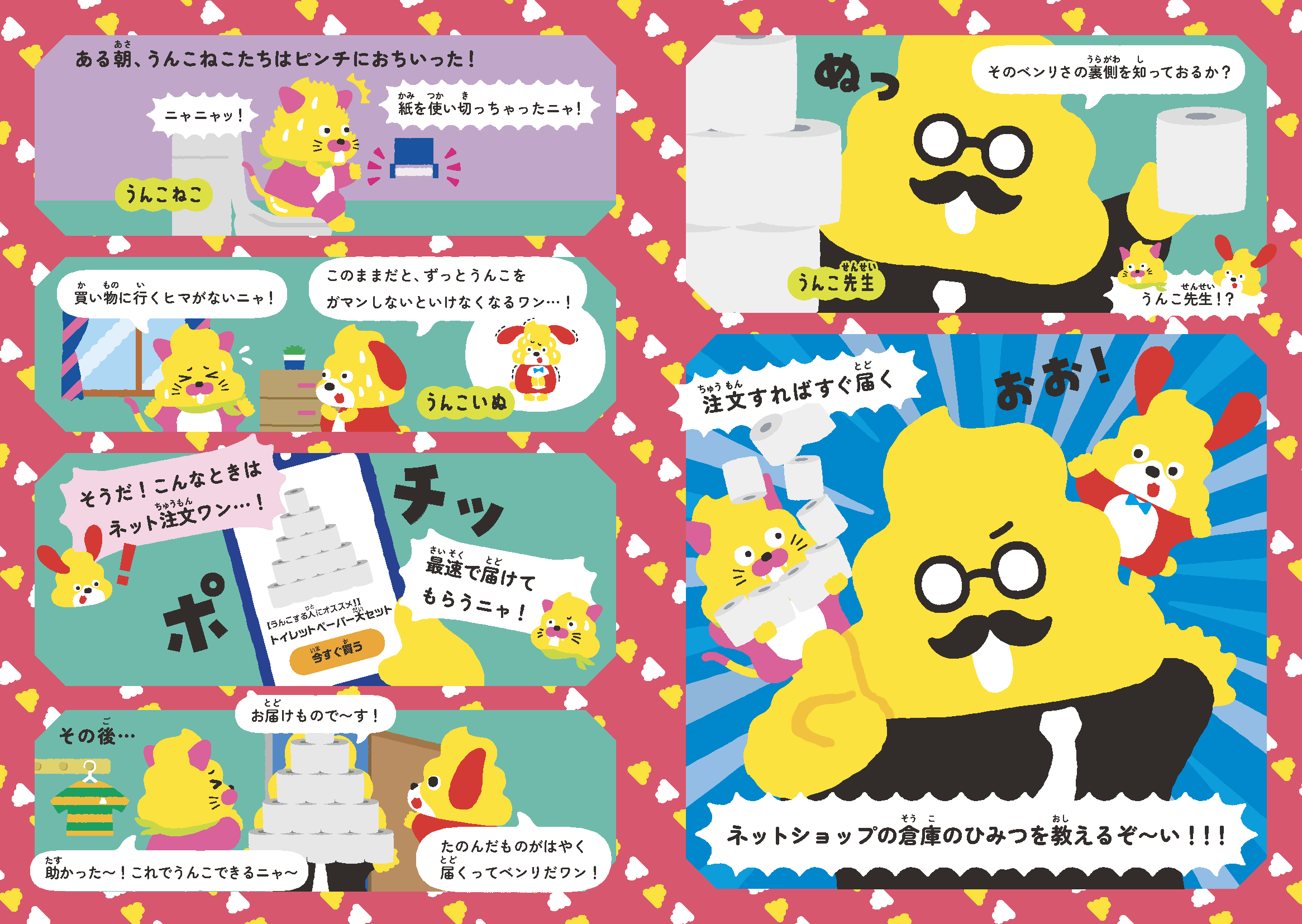 トイレットペーパーが切れ、ネットで注文すると、すぐに届く——。その便利さに、うんこ先生が問いかけます。「そのベンリさの裏側を知っておるか?」