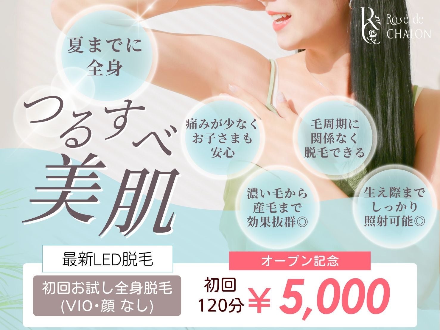 オープン記念として、全身脱毛とプラズマ美容フェイシャルを特別価格で提供