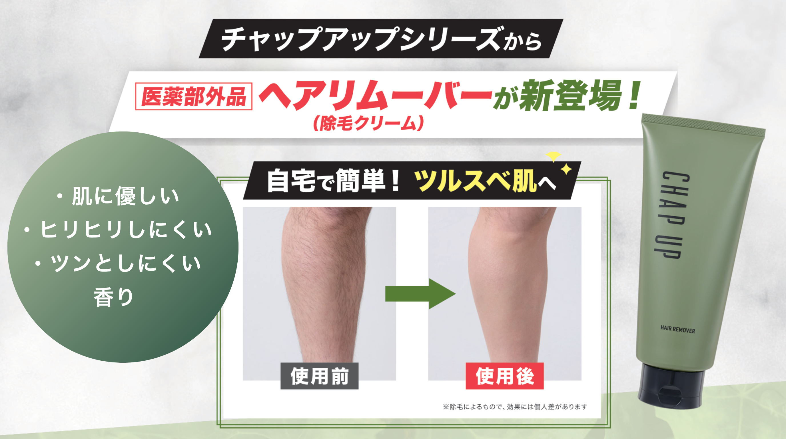 《カミソリ負けに悩む男性へ》シリーズ累計売上1,400万本*突破の「チャップアップ」から、肌をいたわる医薬部外品の除毛クリームが登場!