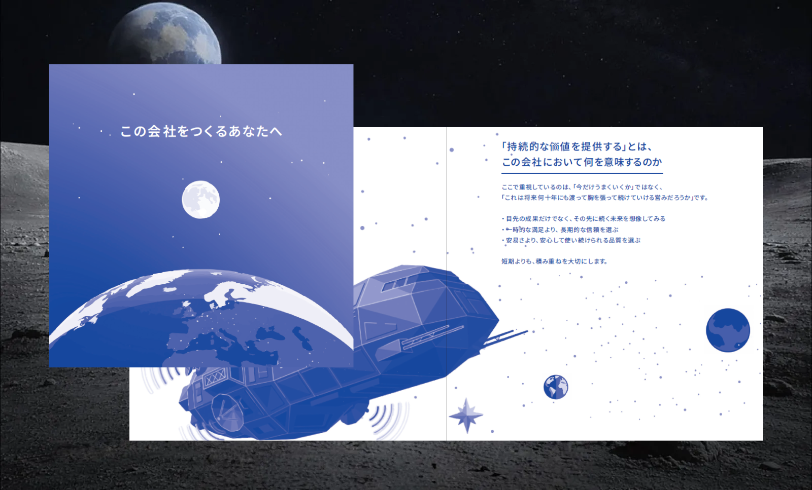 リブランディングに伴い、会社の想いと新しいMVVの浸透を目的とした「カルチャーブック」を制作しました。設立以来大切にしてきた価値観を一冊にまとめました。今後は、採用活動や新入社員研修などでもカルチャーブックを活用していきます。